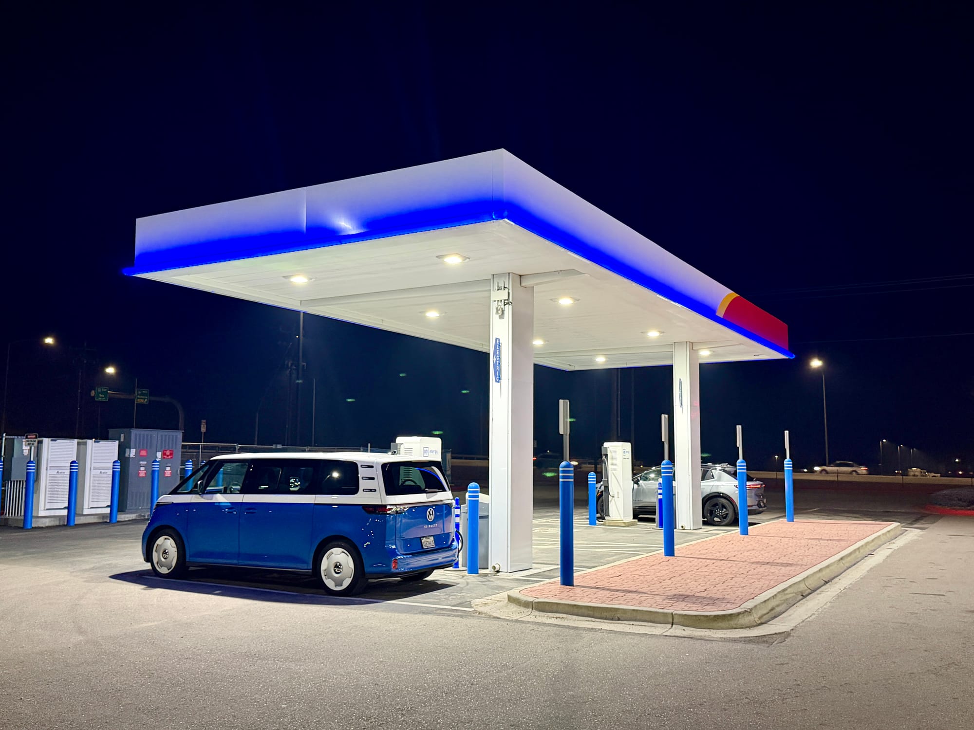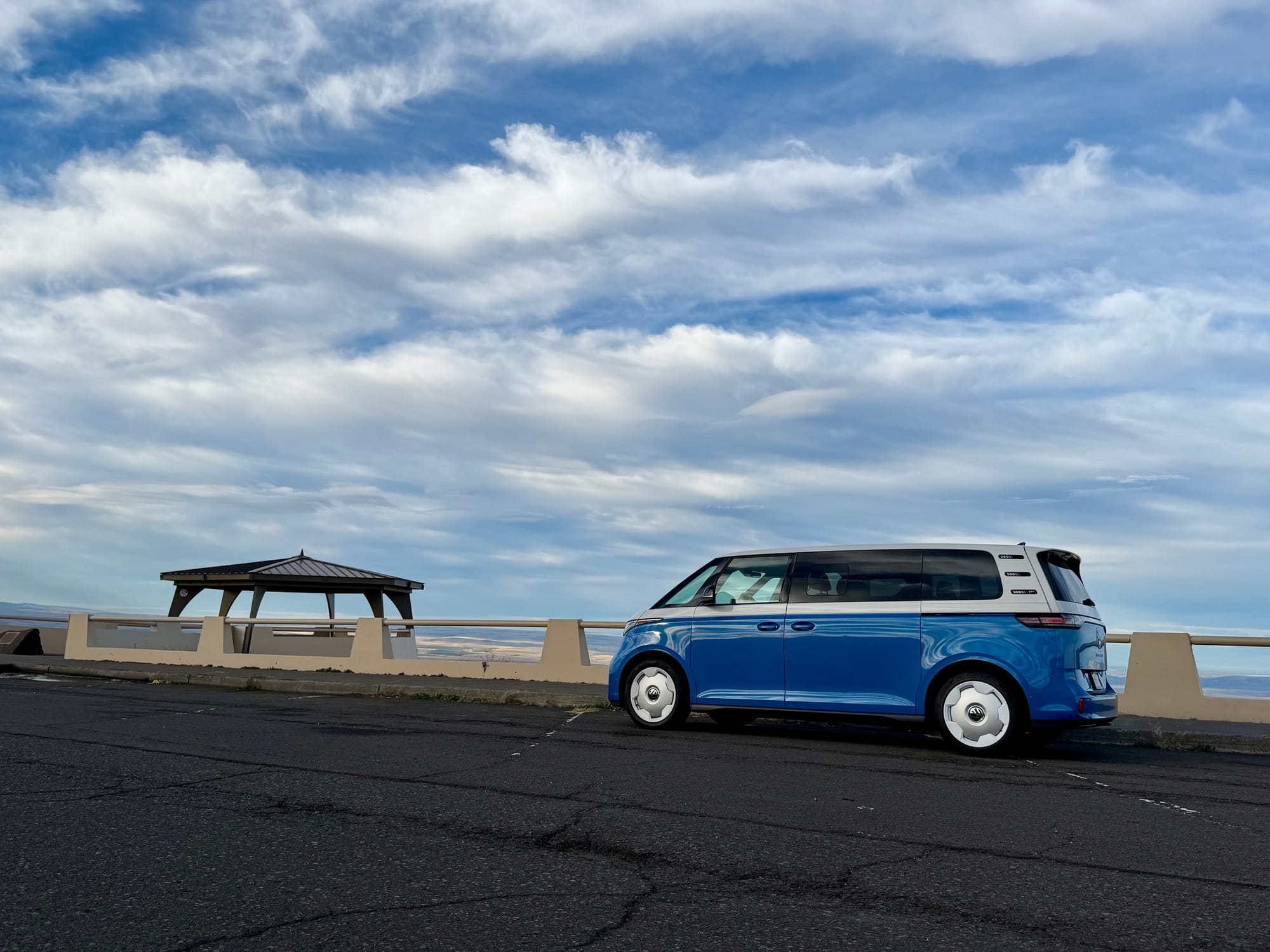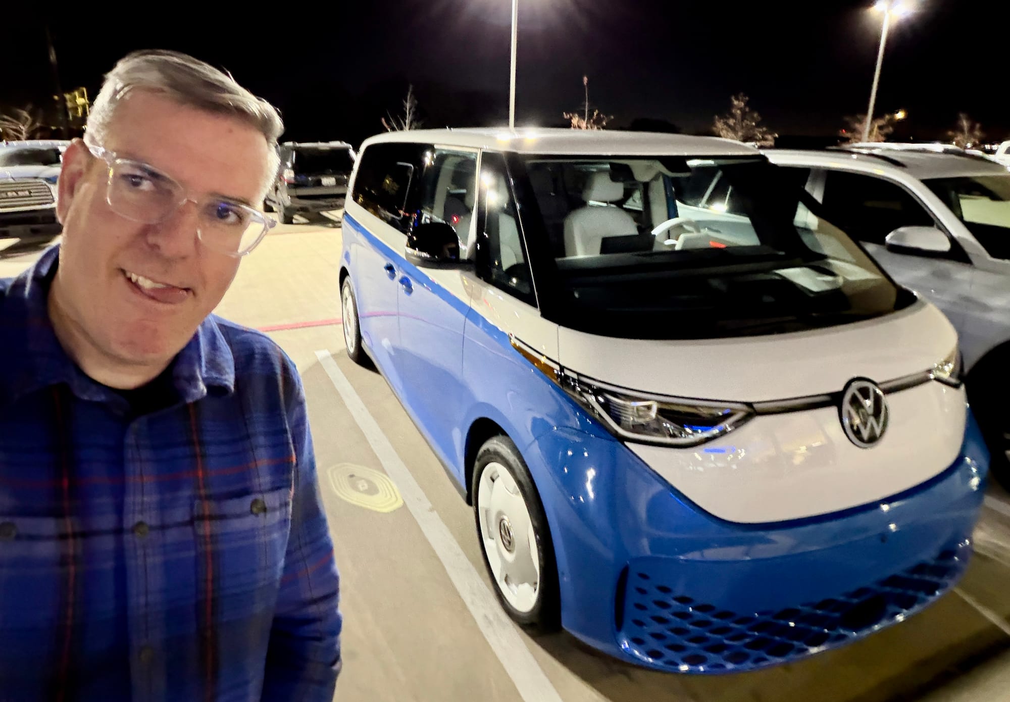 I just got back from a long drive in my wife's new-to-her car, a 2025 VW ID Buzz 1st Edition 4Motion in blue. On Thursday of last week, I flew to the Dallas/Fort Worth airport, got picked up by the dealer, signed some paperwork, and after a quick dinner stop at Whataburger, I headed west.