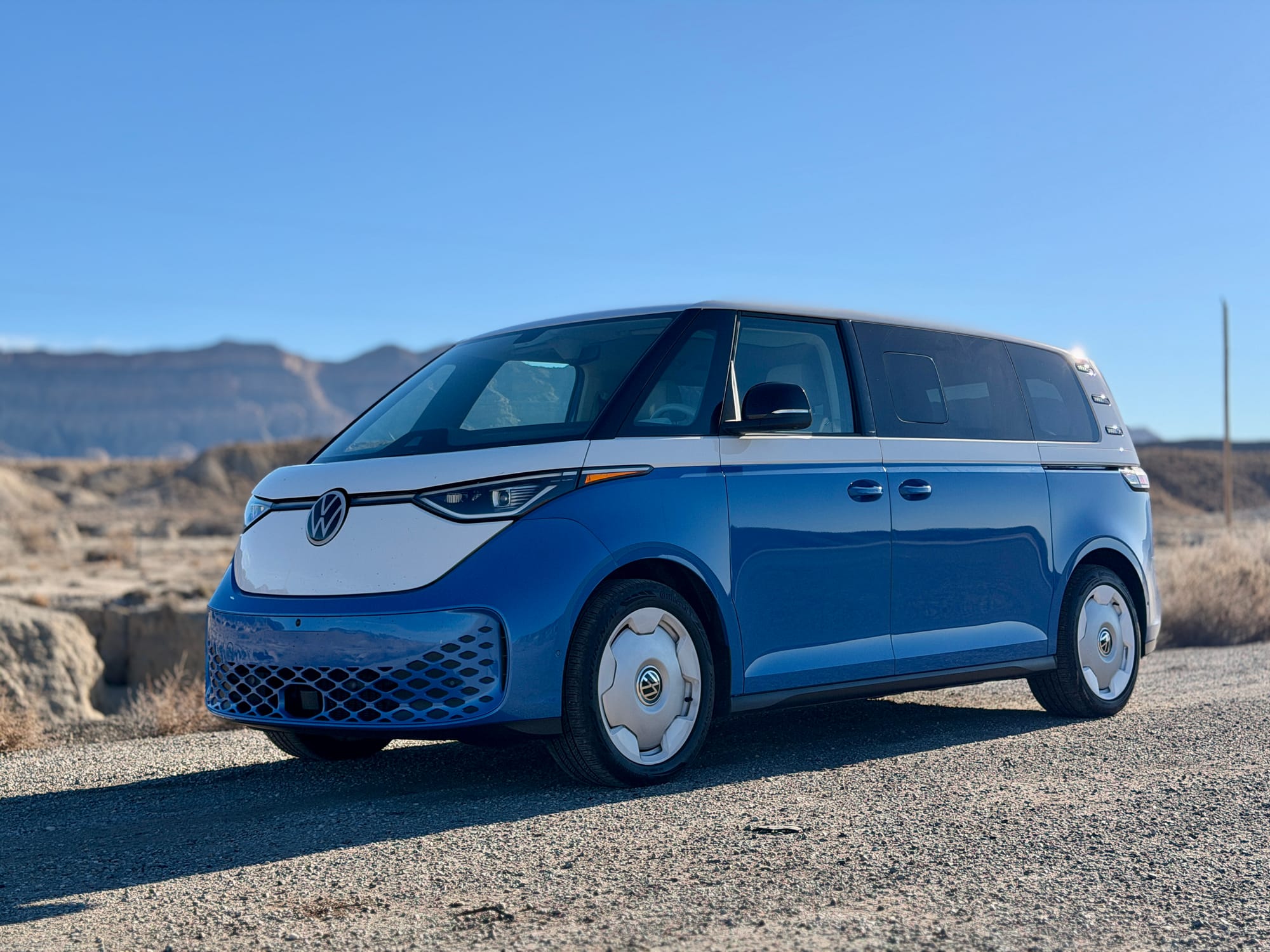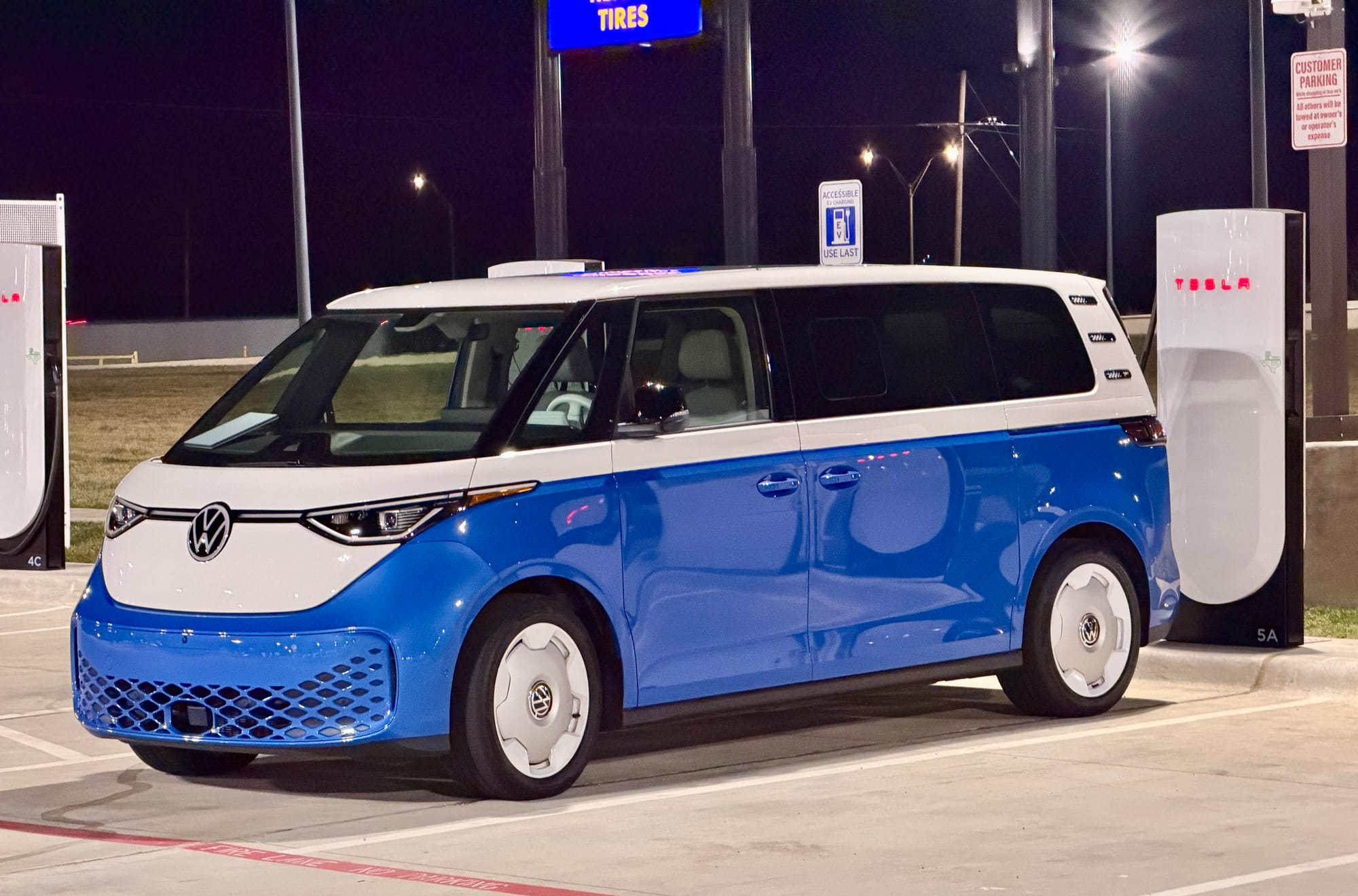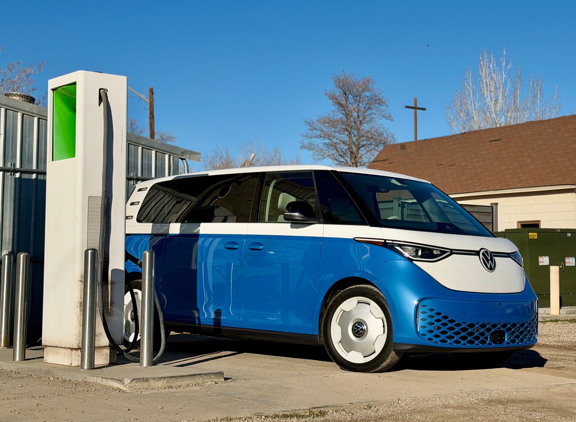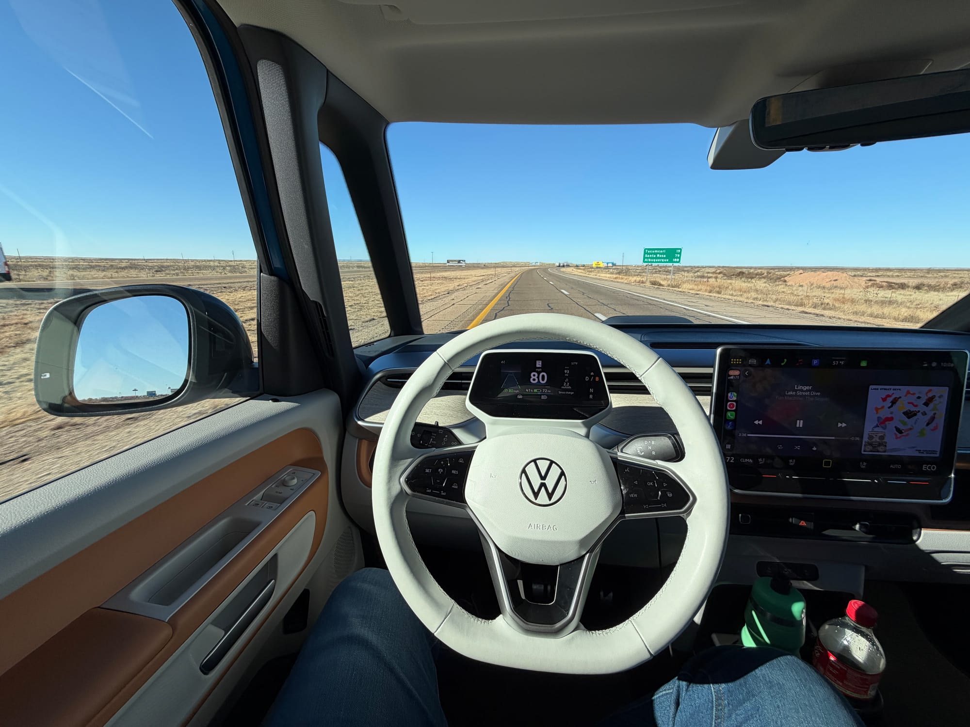 I just got back from a long drive in my wife's new-to-her car, a 2025 VW ID Buzz 1st Edition 4Motion in blue. On Thursday of last week, I flew to the Dallas/Fort Worth airport, got picked up by the dealer, signed some paperwork, and after a quick dinner stop at Whataburger, I headed west.