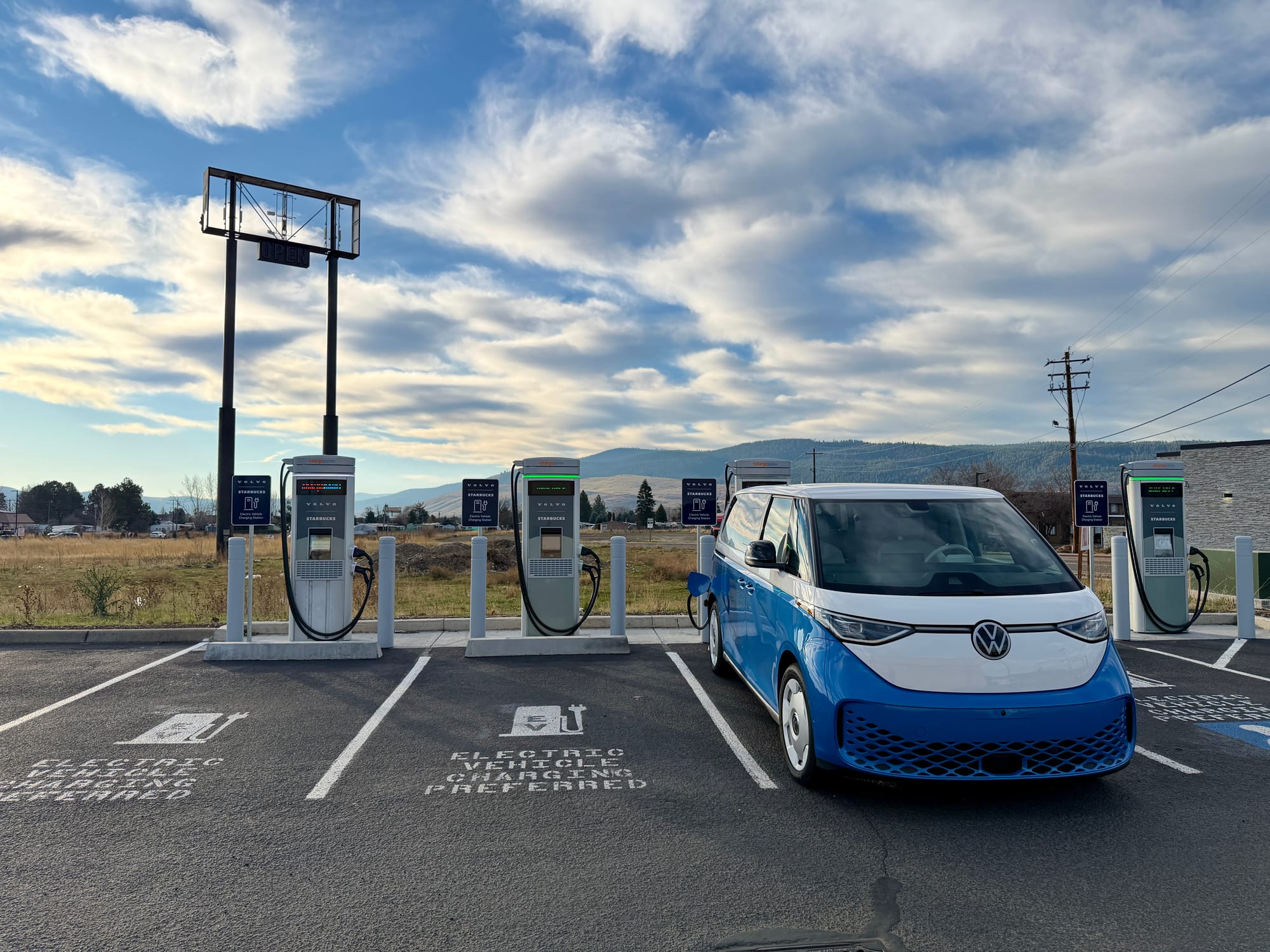 This isn't my first long road trip in an EV, but some of the challenges I had in that first trip happened here. About half of the Electrify America stops had at least one broken charger. Few of the chargers delivered close to the 200kW max recharge rate of the Buzz, but that was probably due to VW's battery limits in winter conditions.