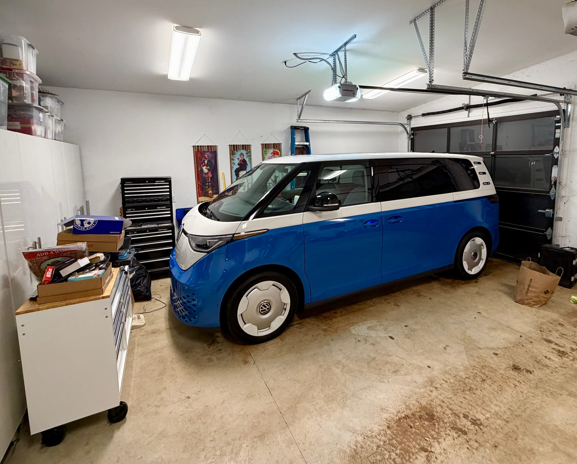 I generally love the ID Buzz after spending four days in it. The cabin is huge inside, the seats are comfy and the heated seats and steering wheel were nice when the temps were close to freezing. The center screen is big and easy to use, and there are usb-c charging ports all over the entire van, likely more than one per passenger. There is ample storage and the seats are spaced so far apart that as a 6'3" tall person I can sit in any of the three rows with seats all the way back and I still have a good 6" of room in front of my legs. It feels like a luxury car with features I've never had before like cold air ventilated seats, massaging seats, and auto-parallel parking.