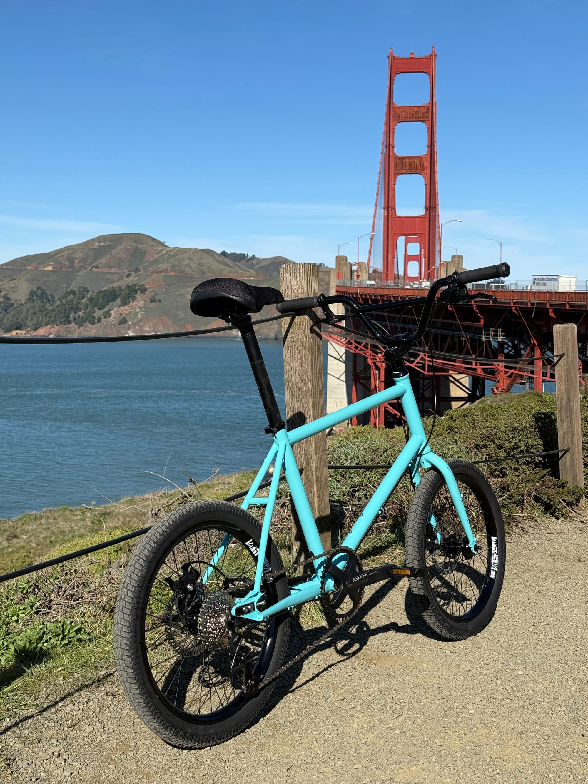 I had a couple hours to kill before some meetings so I parked in the Presidio and took the minivelo out to ride down to the bridge, back up to the deck, across to the other side and took a gander at the Pacific Ocean. I had a great time riding for an hour and will bust this bike out constantly for random city excursions in the future.