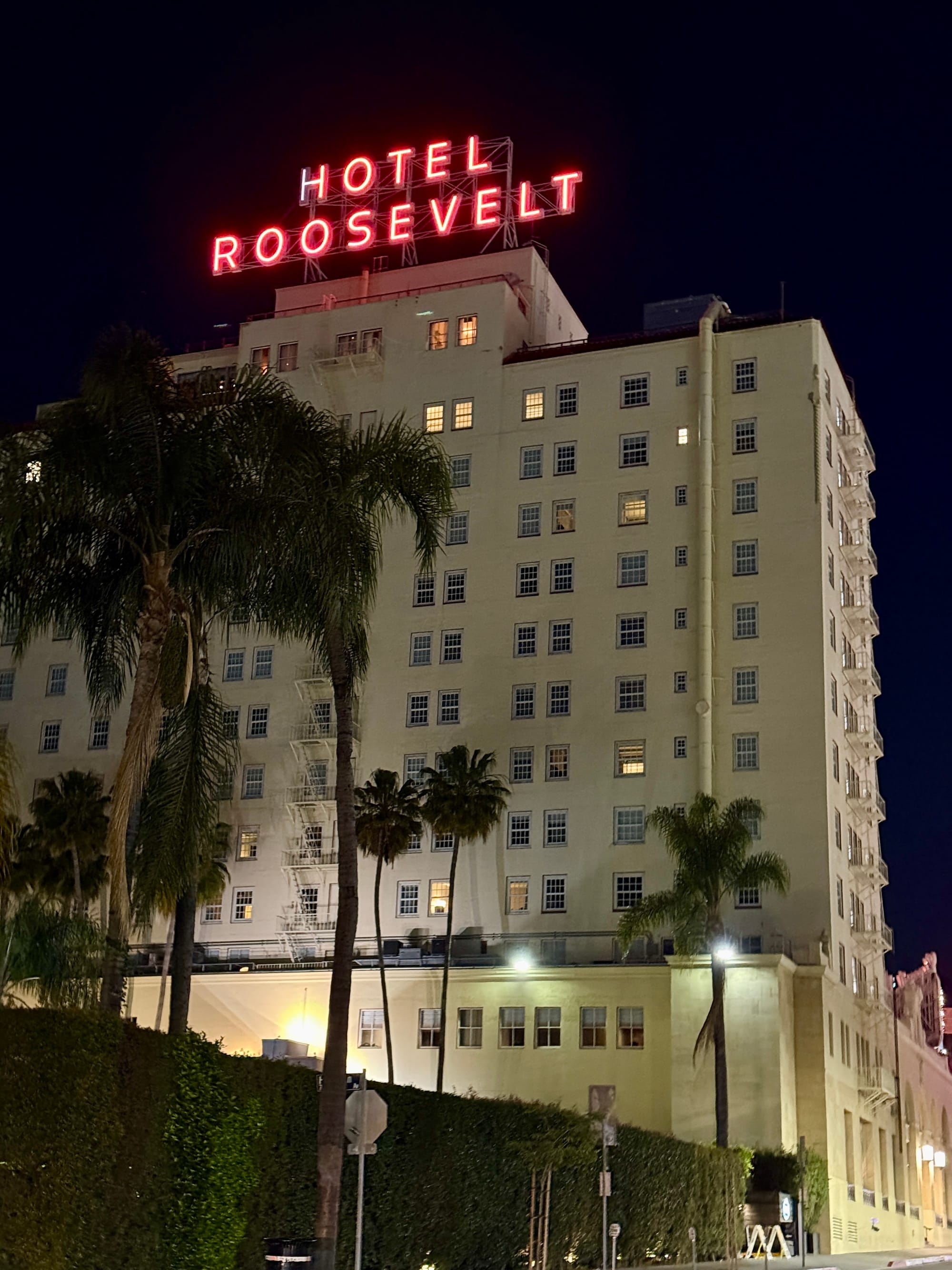 The highlight of the whole ride was when we got to cruise up and down Sunset Boulevard with it completely closed down, just us three riding along on empty, open streets. Oh look! There's the Chateau Mormont where John Belushi died. There's the Roosevelt Hotel where I used to go see jazz concerts in the 1990s. There's where the old Tower Records shop was. There's the Pantages theater and the El Capitan theater.