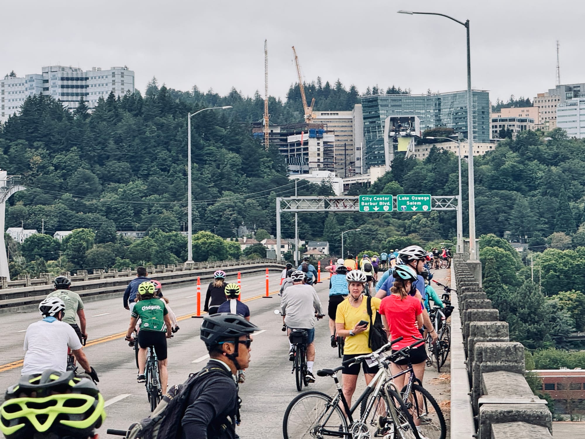 I sincerely love the Portland Bridge Pedal because they close all the freeways in the city for just one day and let thousands of people ride around and mostly I love it because I can stop at the top of huge road bridges with amazing views of Portland and leisurely take photos in places where it's impossible to normally stop and enjoy the view.