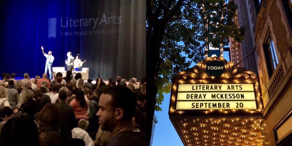 I caught DeRay Mckesson on his book tour as it passed through Portland tonight. He did about an hour on stage taking questions from host Lauretta Charlton before moving to another half hour of audience Q&A (on cards, no mics in the crowd, which was a welcome change).