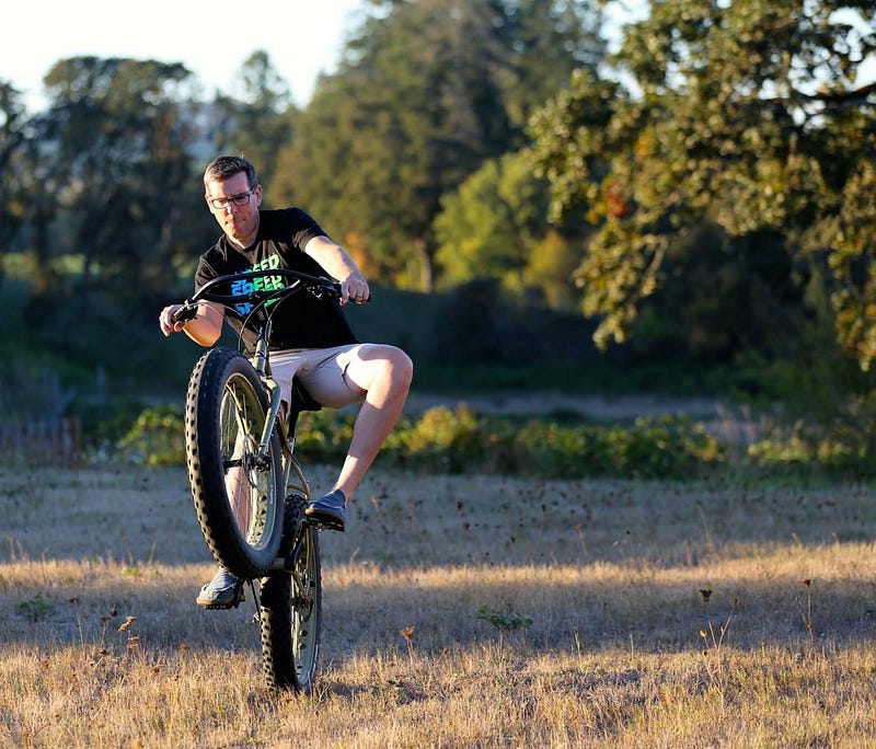 A few days later, I brought it with me to a cyclocross race, but I didn’t race on it. Instead, I used it as a pit bike, riding around the farm where the race was held. The race course was quite bumpy on our cyclcross bikes, and I had a blast riding over the same trails but feeling none of the bumps after the racing was over. I bunny-hopped the bike over foot-high barriers in the course, and I popped wheelies all around the venue, all day long. I had 8 hours of fun on this beast, and the best part was the bike made people smile uncontrollably. Everyone wanted to know more about it, kids pointed, racers kept asking me how much it weighed. I put the seat down a bit so more friends could ride it. One said “I need to stop riding this before I end up ordering one.” Another said “That’s it, I have to get one now.” Then I realized: