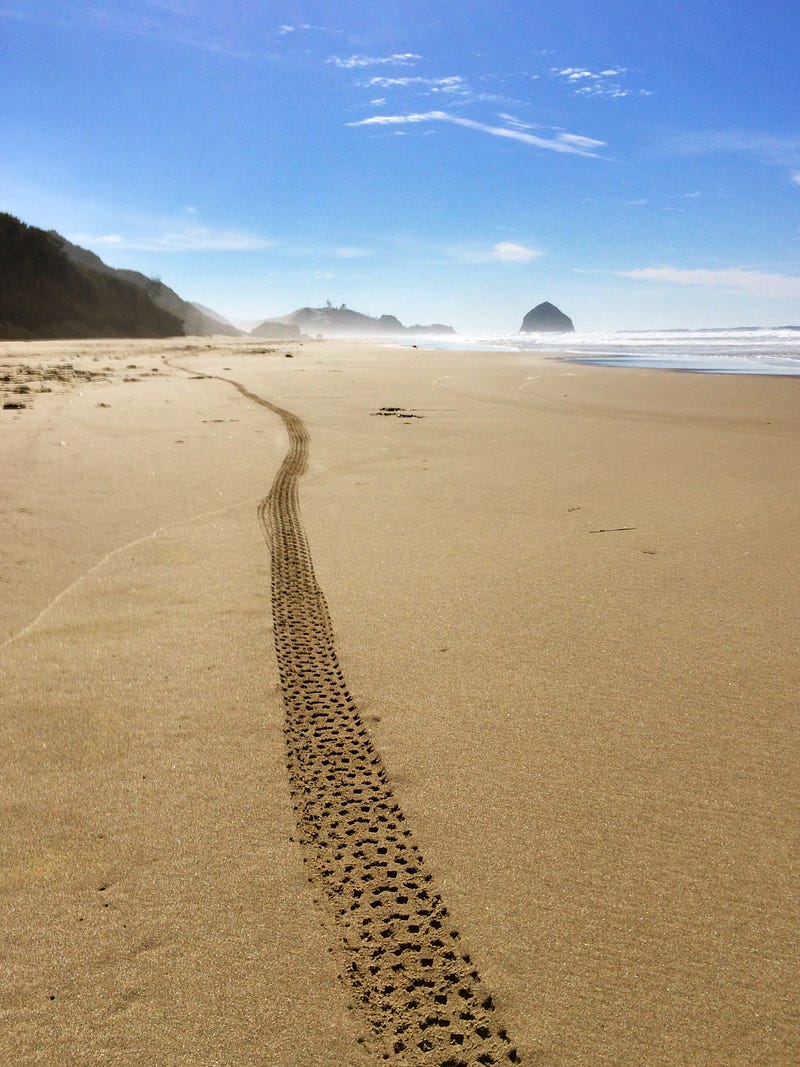 I parked my car a couple miles north of Pacific City, Oregon along the beach where off road vehicles are allowed to drive. The plan was to ride down the beach a few miles then over a set of dunes, and down into Pacific City proper for lunch before riding back. I knew I’d get a variety of terrain and I’d get to see how this bike floated over soft, firm, and wet types of sand, and up and down large loose sand dunes.