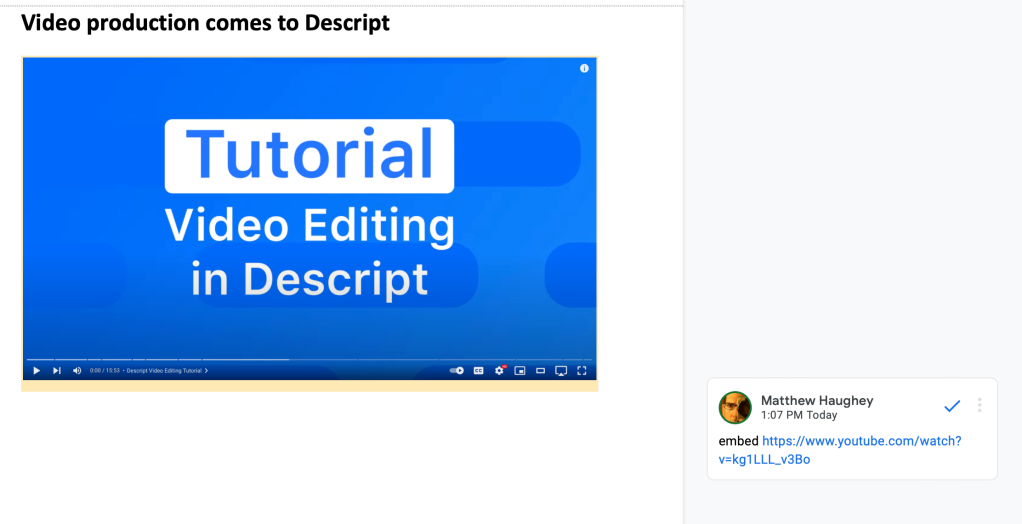 It's utterly bonkers in the year 2022 you can't embed a YouTube video directly in a Google Doc.