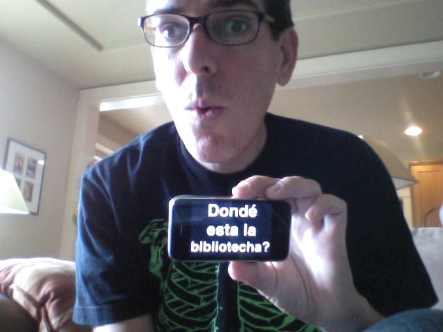 Imagine landing in a country, using your iPhone to figure out your location and find your hotel and somewhere to eat. Now imagine you need to ask for help from someone on the street so you launch a babelfish app, pick the required language and speak into your phone mic while it displays the results. Here is me asking "Where is the library?" into an imagined app.