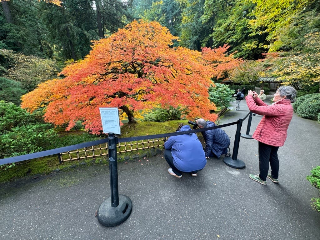 Portland's Japanese Gardens opened around 1967 and the famous maple tree was planted a year later, and thought to be about 20 years old at the time. In 2012, a photo of the tree in full Fall glory won a photo contest at National Geographic, and apparently it became a hotspot every autumn ever since for local photographers. I had no idea, but the day I visited a few years back was around its peak and it happened to be at the best part of the day when photographers fight over the small space at the base of the tree.