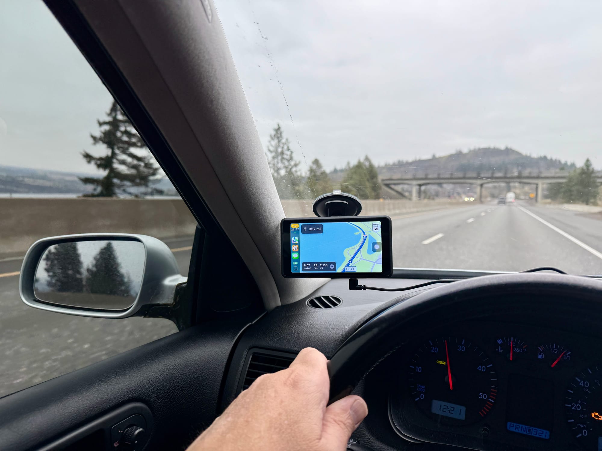 This 2003 Jetta Wagon doesn't have CarPlay and it was bugging me for such a long trip so I dropped into a Walmart and grabbed a tiny 5" CarPlay monitor thing for $99 to view maps while I drive and know when I get texts that can be read to me. It's so small it reminds me of having a Garmin or TomTom GPS unit in the early 2000s.
