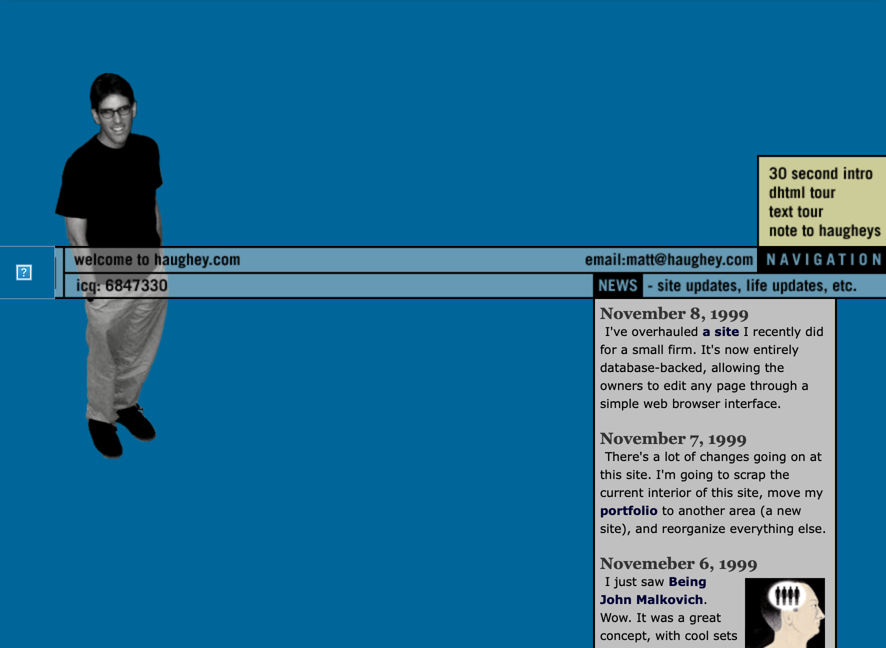 By early 2000, I moved things to Blogger (remember the joy of FTP?) and off my own custom blogging engine, and eventually I got lucky enough to work at Blogger, on Blogger. Good times.