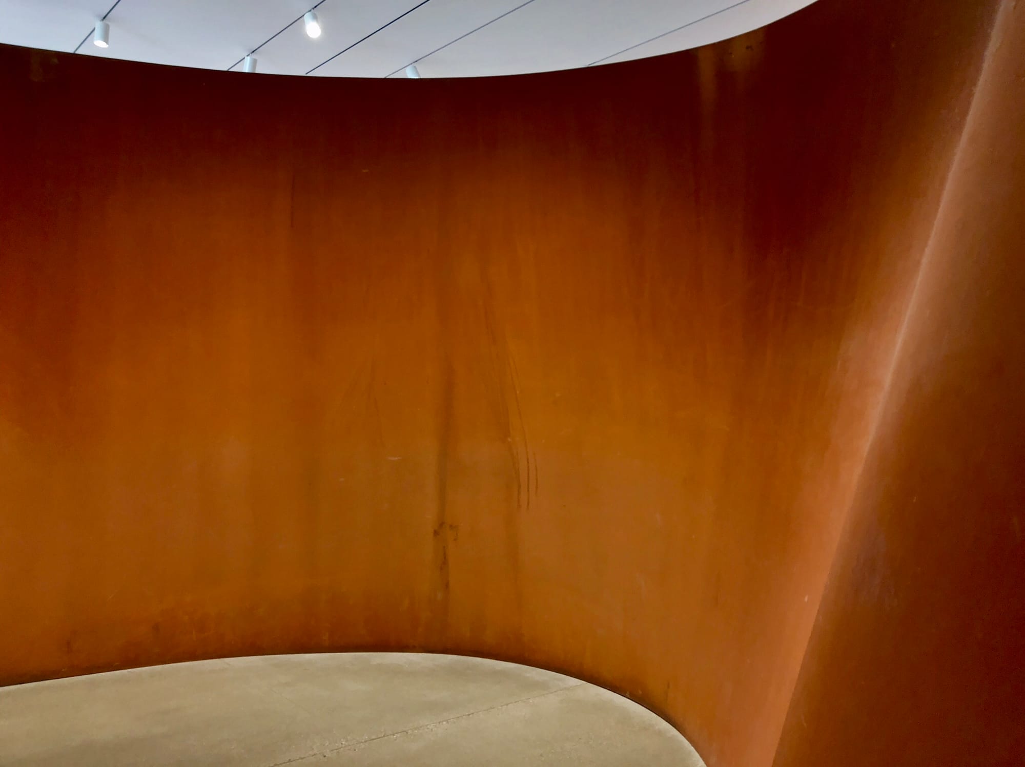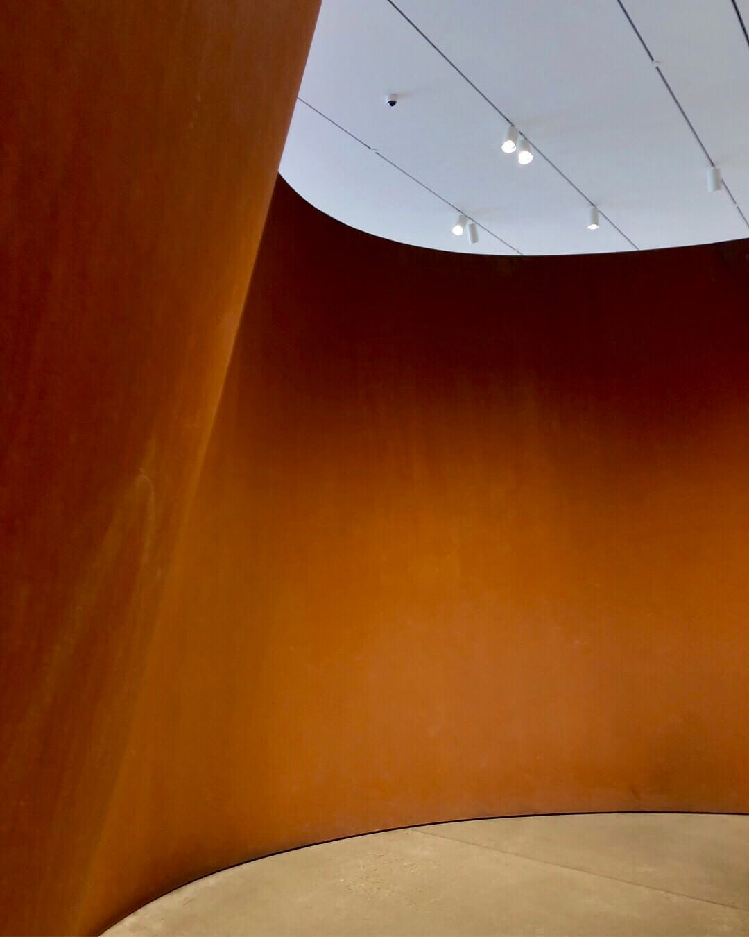 I also loved experiencing the Richard Serra pieces. I first encountered his work at the Seattle sculpture garden next to the ocean about 10 years ago, and his curving steel structures seemed weird and minimalist but evocative of the ships all around. My initial impression was it was a lot of hype for nothing. Then I ran into them at MOMA in New York in their gardens and then at the SFMOMA. Each time I saw his work, it affected me more. The installation at LACMA is perfect. There are four spaces in the single continuous work to walk inside and the size of the piece along with the room size means you are overwhelmed with the softly curving perfect rust patina all around you.