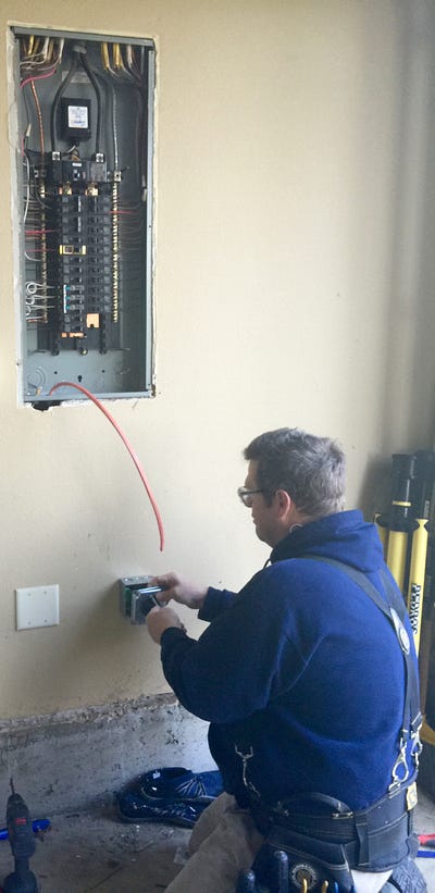 Every EV you buy/lease on a lot will likely be offered with a branded charger for your home garage. They frequently run $1,000–1,500 for the charger before installation — don’t buy these from car dealers. Instead, you can go to Amazon and buy something like this perfectly fine level 2 charger for less than $600, and get a local electrician like the guy in my garage here to install everything for a couple hundred bucks.