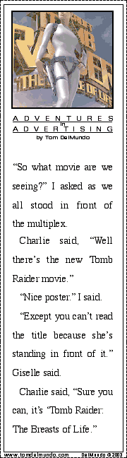 Every 18 months or so I remember a site called Adventures in Advertising by Tom DelMundo. And like a Skinner Box rat, I check every archive to catch up where I last left off. Here's one of the many good ones.