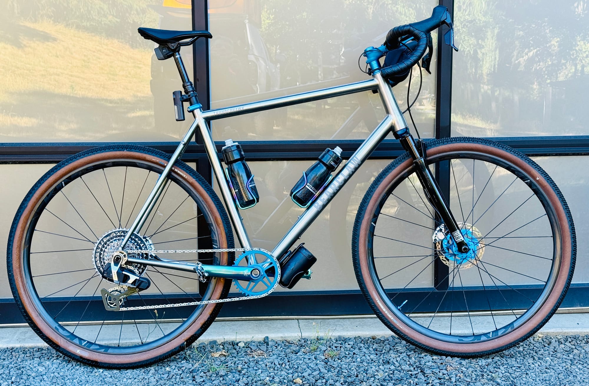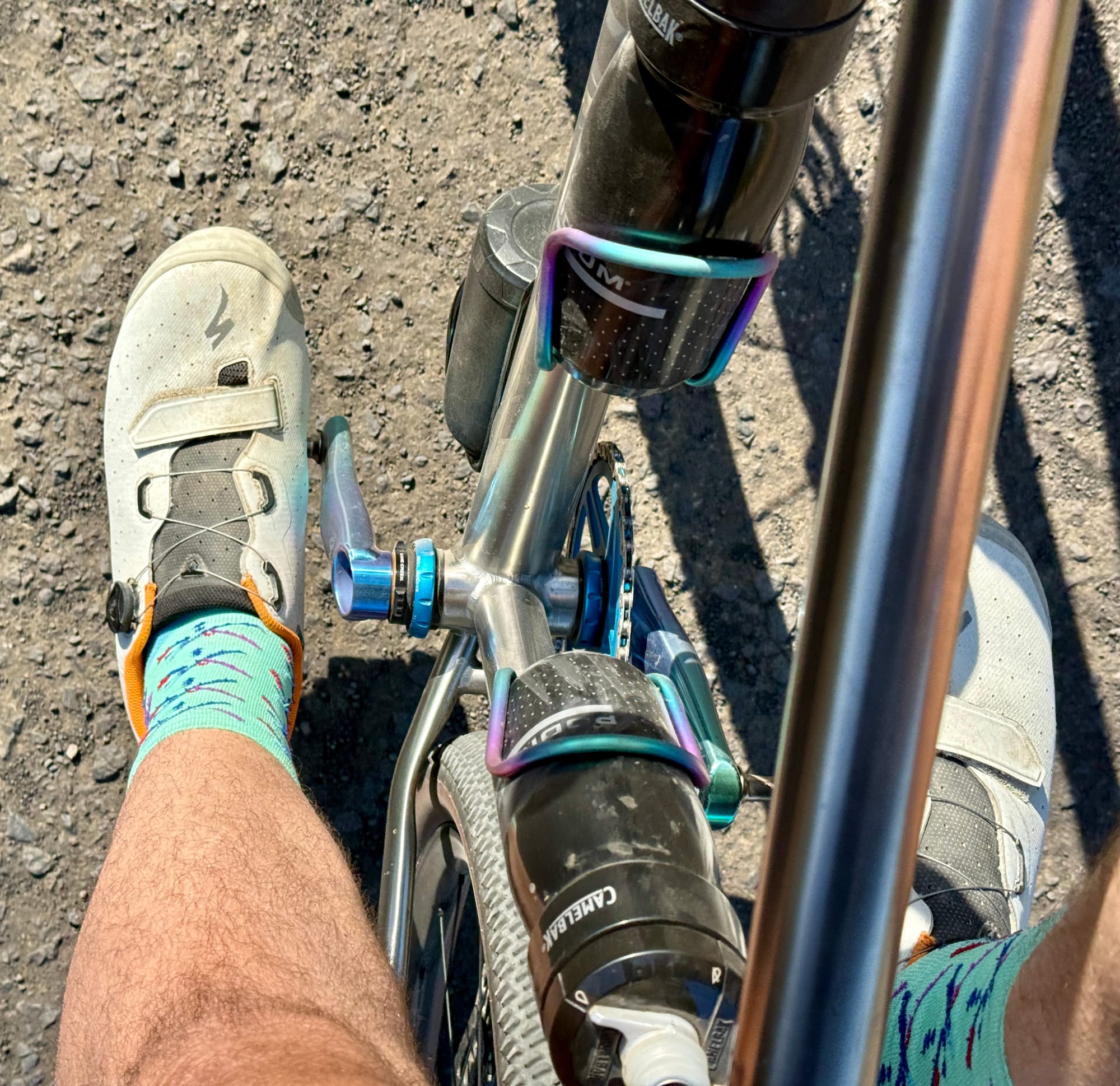 I own bikes made with all sorts of different materials. I wanted to return to a titanium frame because they really do feel bulletproof, have fun ride properties like a steel frame, but can also be stiff like carbon or aluminum. I wanted to avoid carbon fiber for everything, even though I still have a couple bikes with carbon frames. I'm a big, heavy guy and I planned to ride this over rough terrain so I wanted a bike that was more metal than plastic that could really last forever.