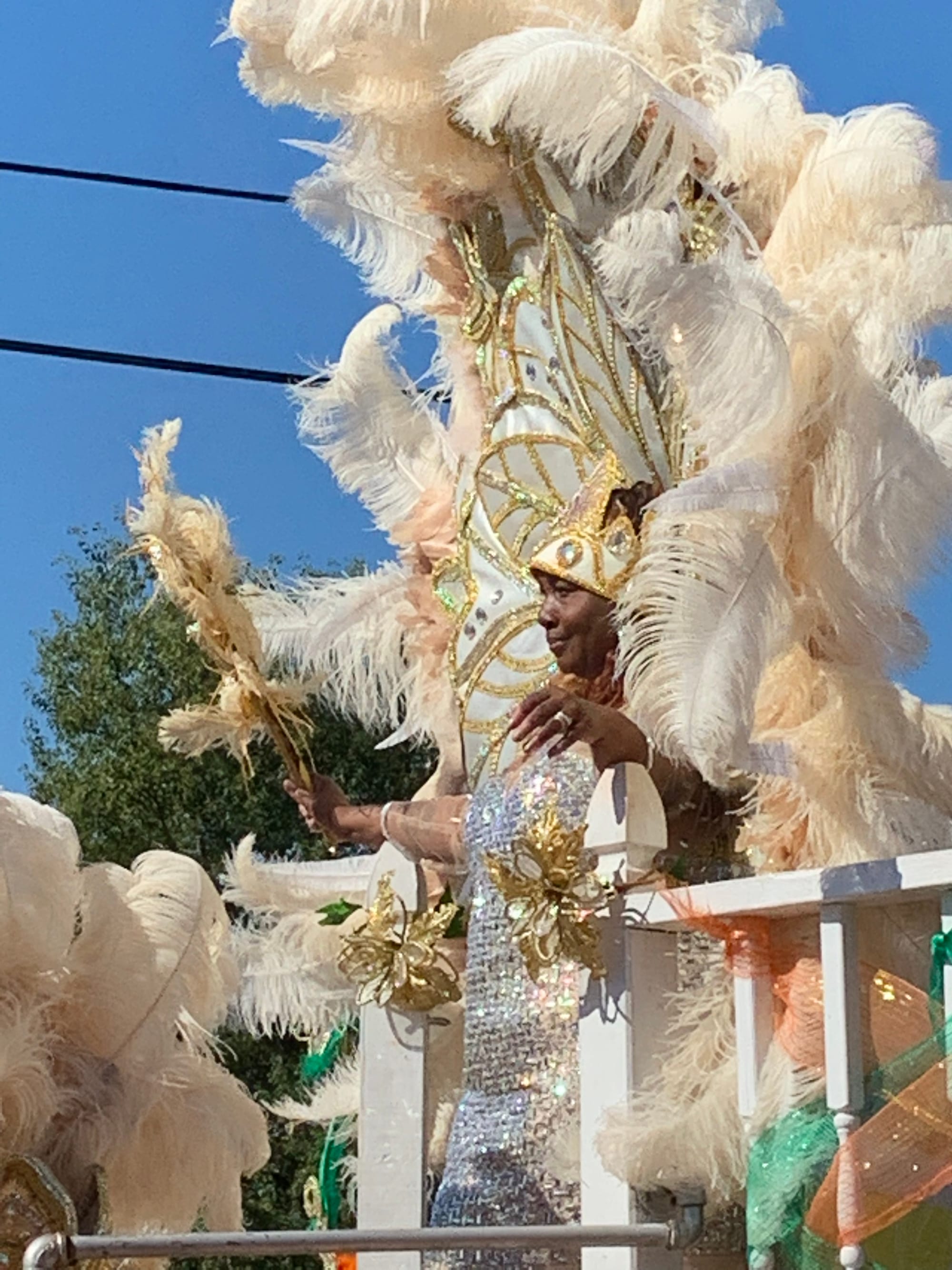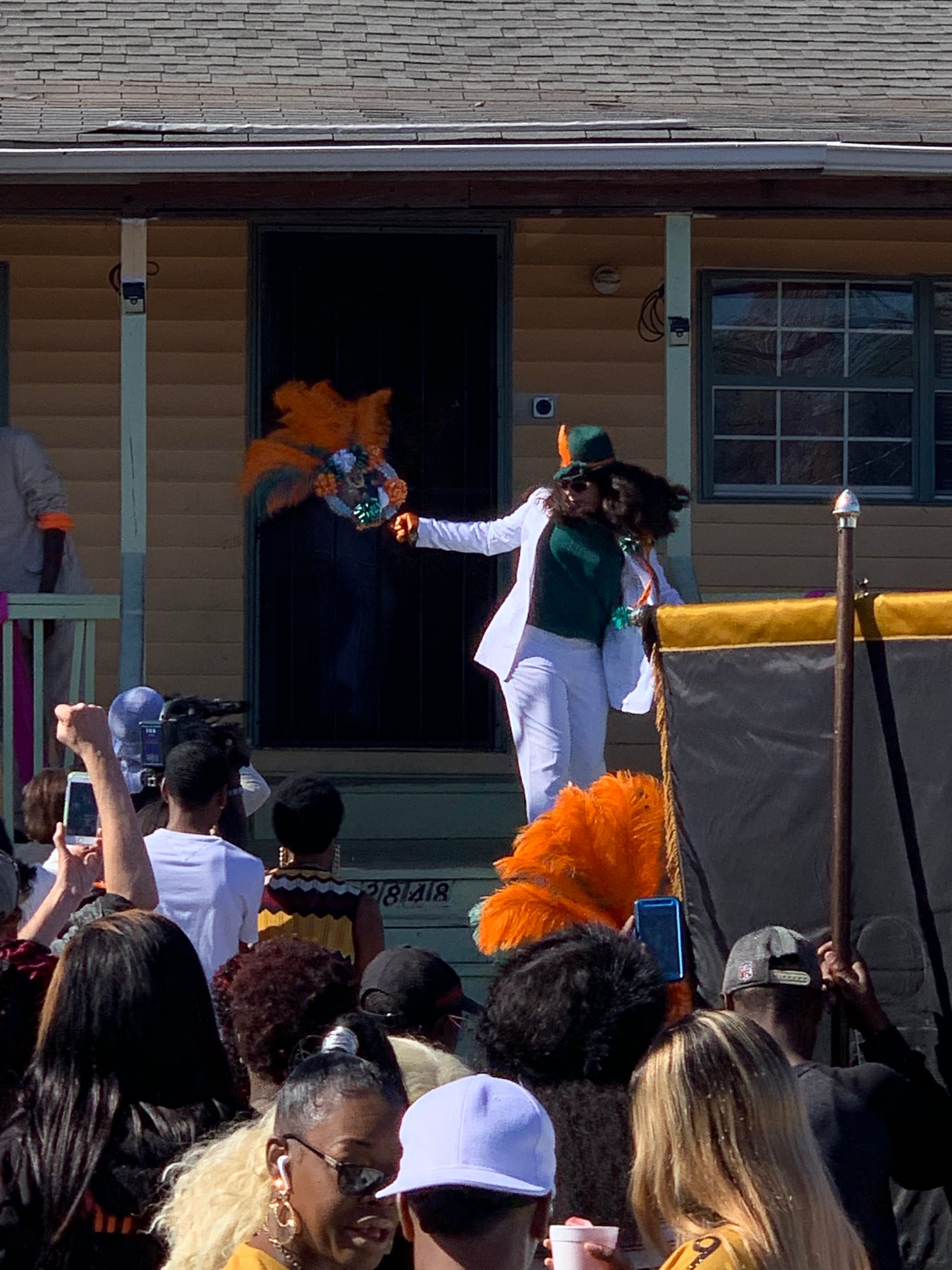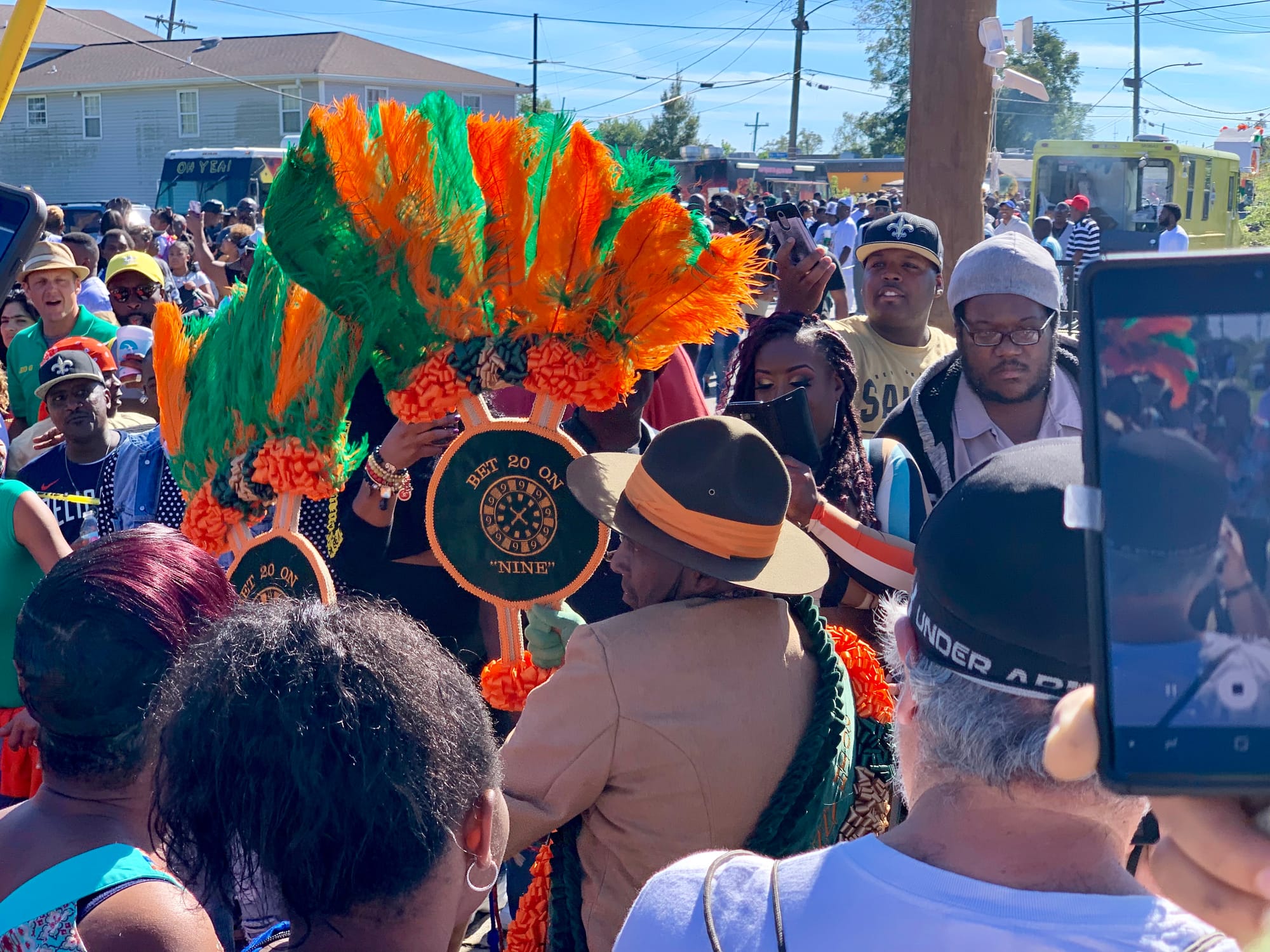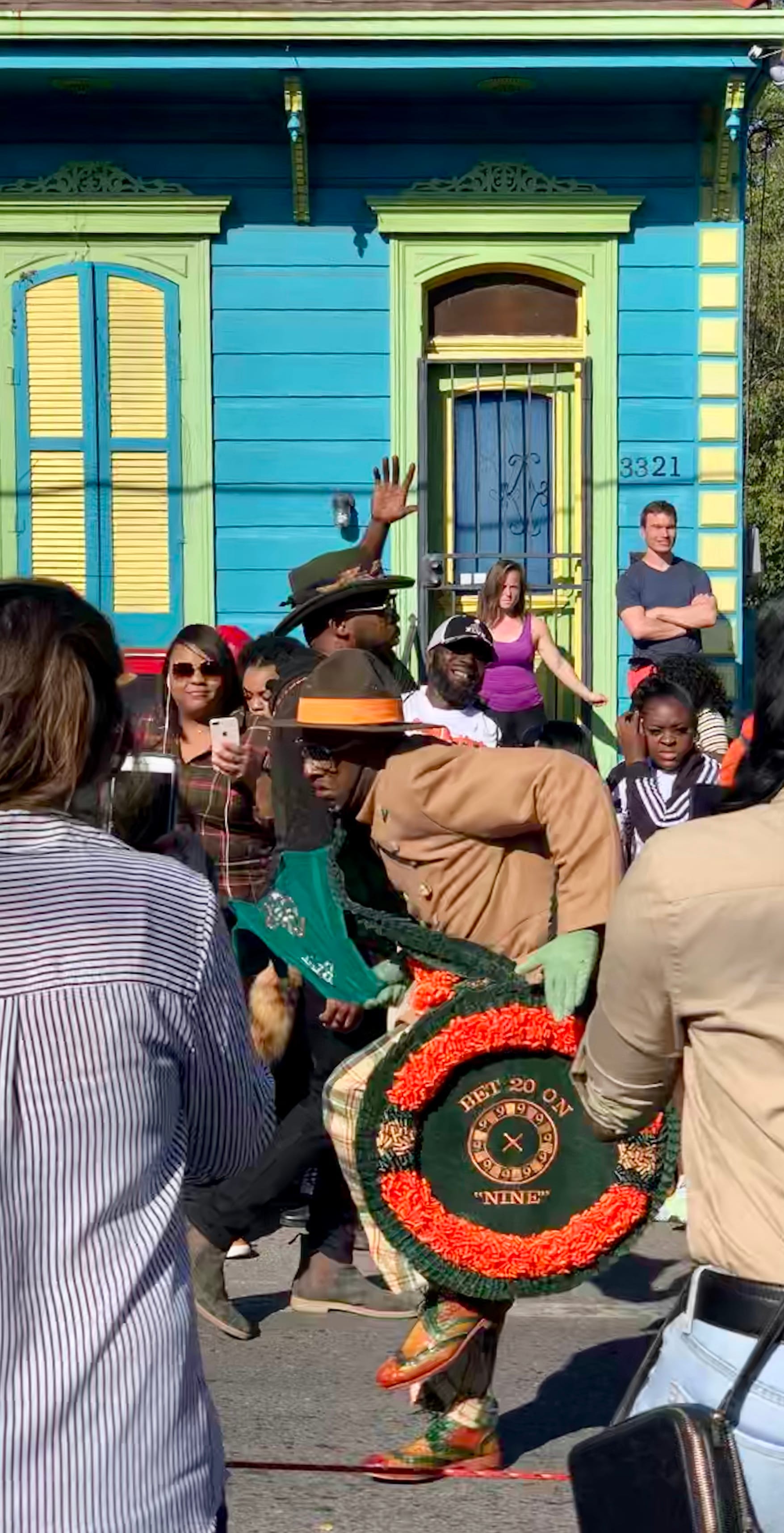 I remember a moment early in the day, when the first groups were coming out of the house and I heard this incredible live music all around me along with all the smells of food and drink being prepared in the street and everyone was cheering on a dance squad decked out in matching suits with big feathers to accentuate their moves and then another brass band joined in and then there was the queen surrounded by 5 feet of feathers all around her head looking absolutely like queen of the entire planet earth. It hit every one of my senses at once. It was a celebration and a culture unlike anything I'd seen before. And it was beyond wonderful. I just lost it and started crying at the pure joy of everything happening all around me.