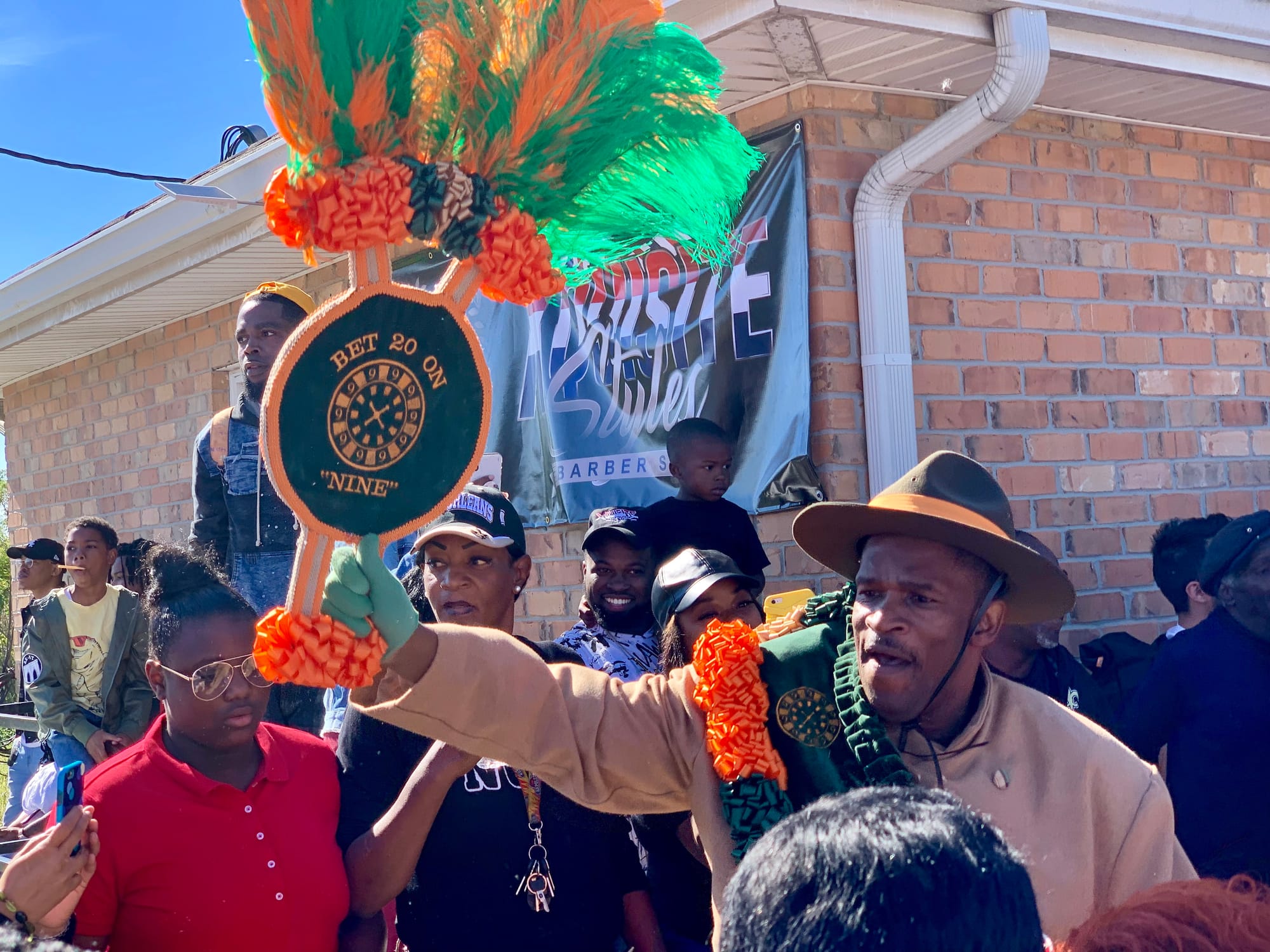 We began at the house where the procession started, awaited the kickoff at noon, and watched one brass band after another play out dance squads and parade kings and queens as they emerged from the home. Then we spent a few hours following the parade at various points.