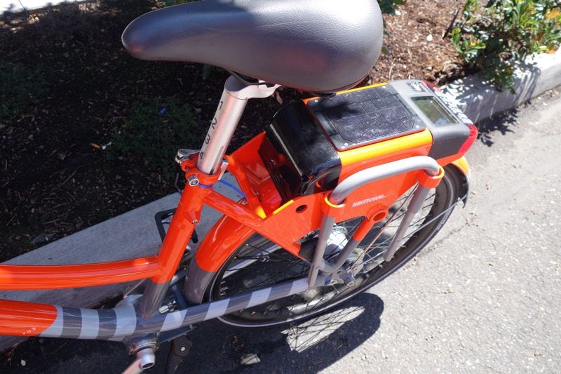 Portland’s Biketown integrates the lock into the bike itself. Why is that good? It’s a giant U-lock that locks into the racks around the city, but you can also lock it to any pole, fence, or even nothing at all (bike has GPS, stealing one would be dumb).