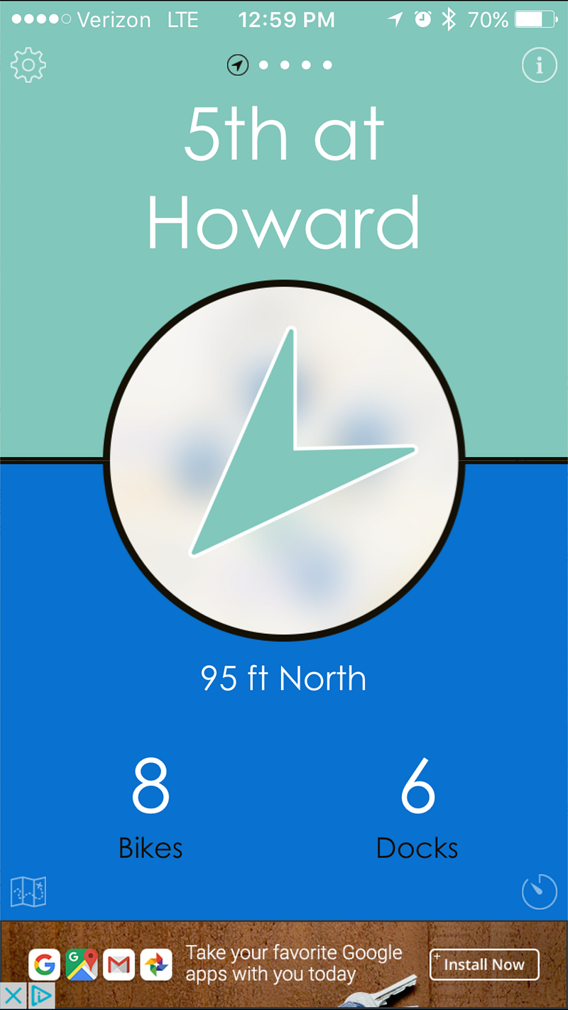 The last thing is the Nike Biketown app’s mapping system is a little tedious and requires a lot of tapping around and scrolling. I like the SF Bay Area bikeshare’s app in that it defaults on launch to showing you the nearest station and how to get to it, which is probably what 90% of people running the app want to know first.