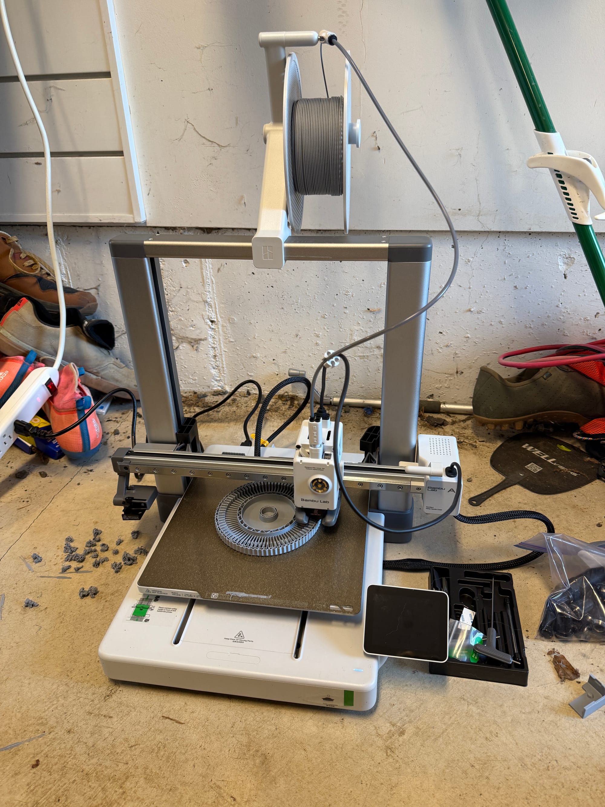 Before nerds jump in, yes, I know it emits harmful fumes which is why it's in the garage next to the cars that make carbon monoxide that can kill you (after an 8hr print, it smells like a nail salon in my garage). And yeah, the temps and humidity in the garage are wildly variable and I know it's not optimal for great printing, but I'm fine with small issues, as I'm not looking for perfection, I'm just getting started making useful things.