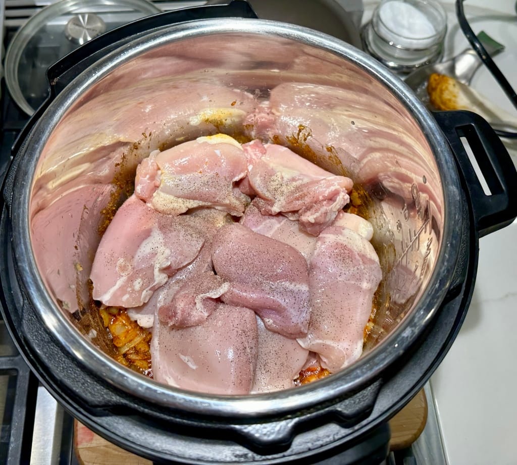 • a lot of recipes call for boneless chicken breast but it can overcook easily and get tough in a pressure cooker if you go just a minute or two too long, while thighs have more moisture and are harder to ruin