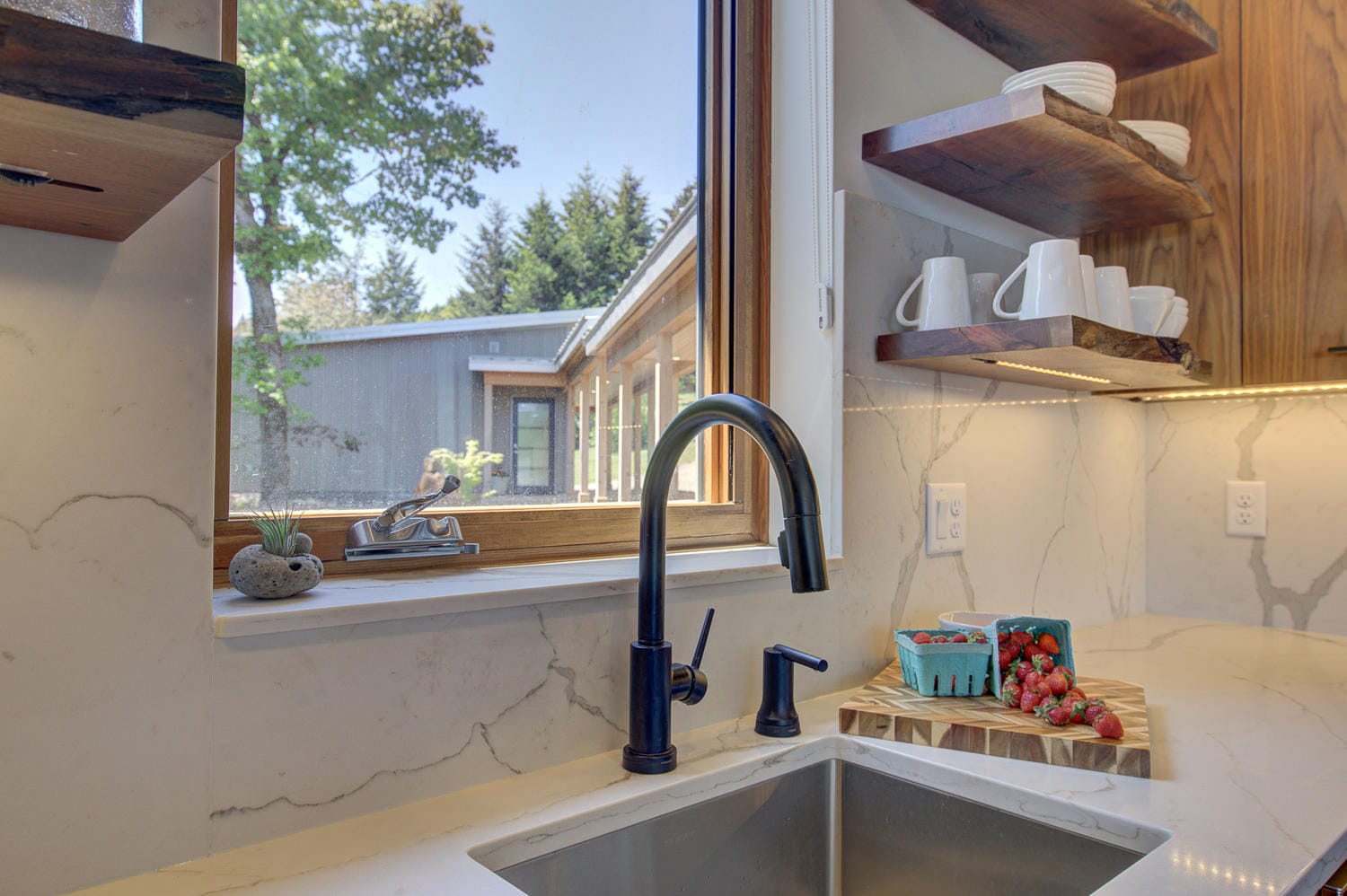 A "touchless" kitchen faucet is a game changer. A bunch of different companies make them and it doesn't matter which brand you choose (the home builder used Kohler for all faucets when the house was built for someone else), but for about $300 you can replace your kitchen faucet with one you simply tap with any part of your body and the water comes on full blast at your most recent heat setting.