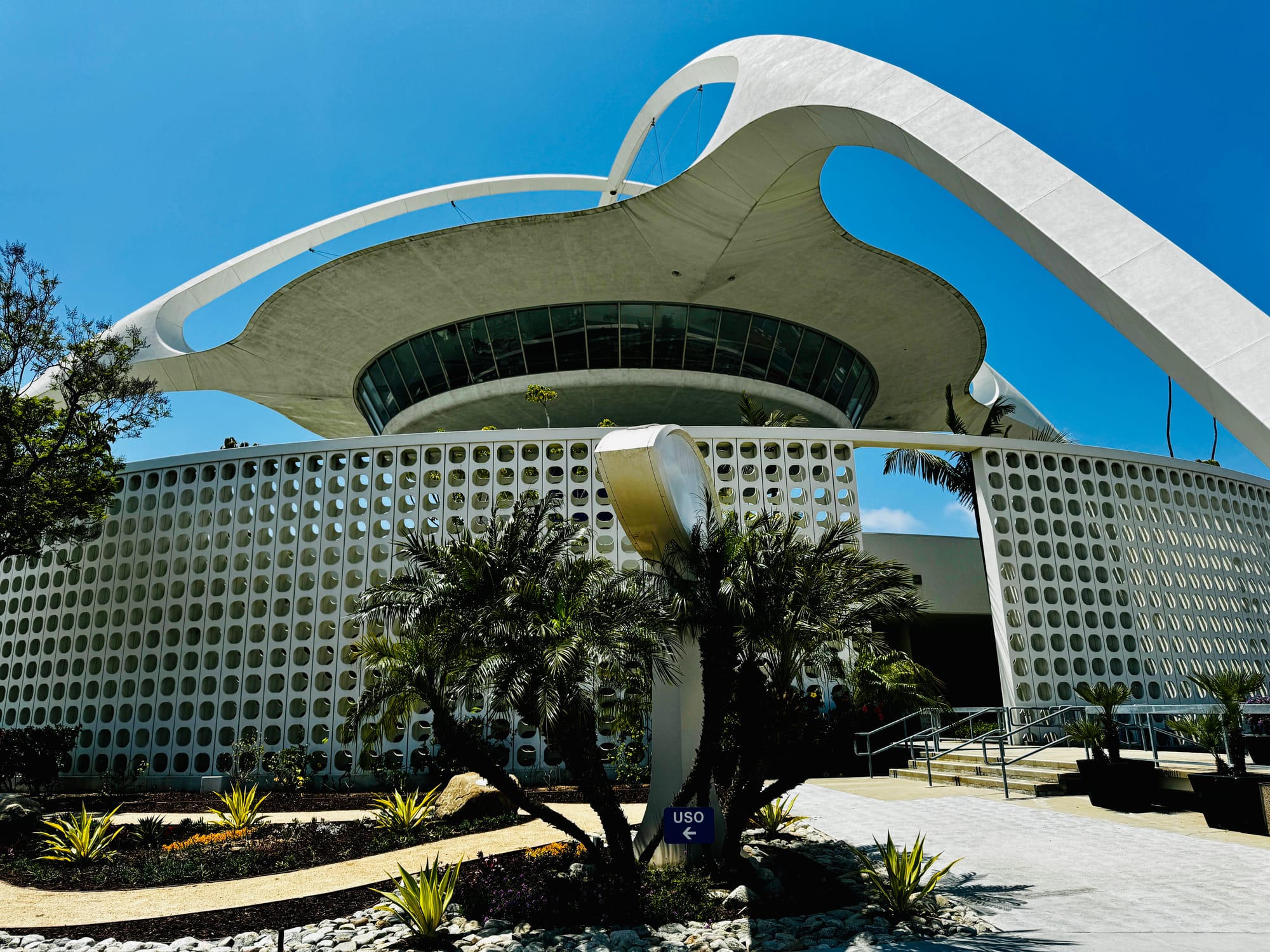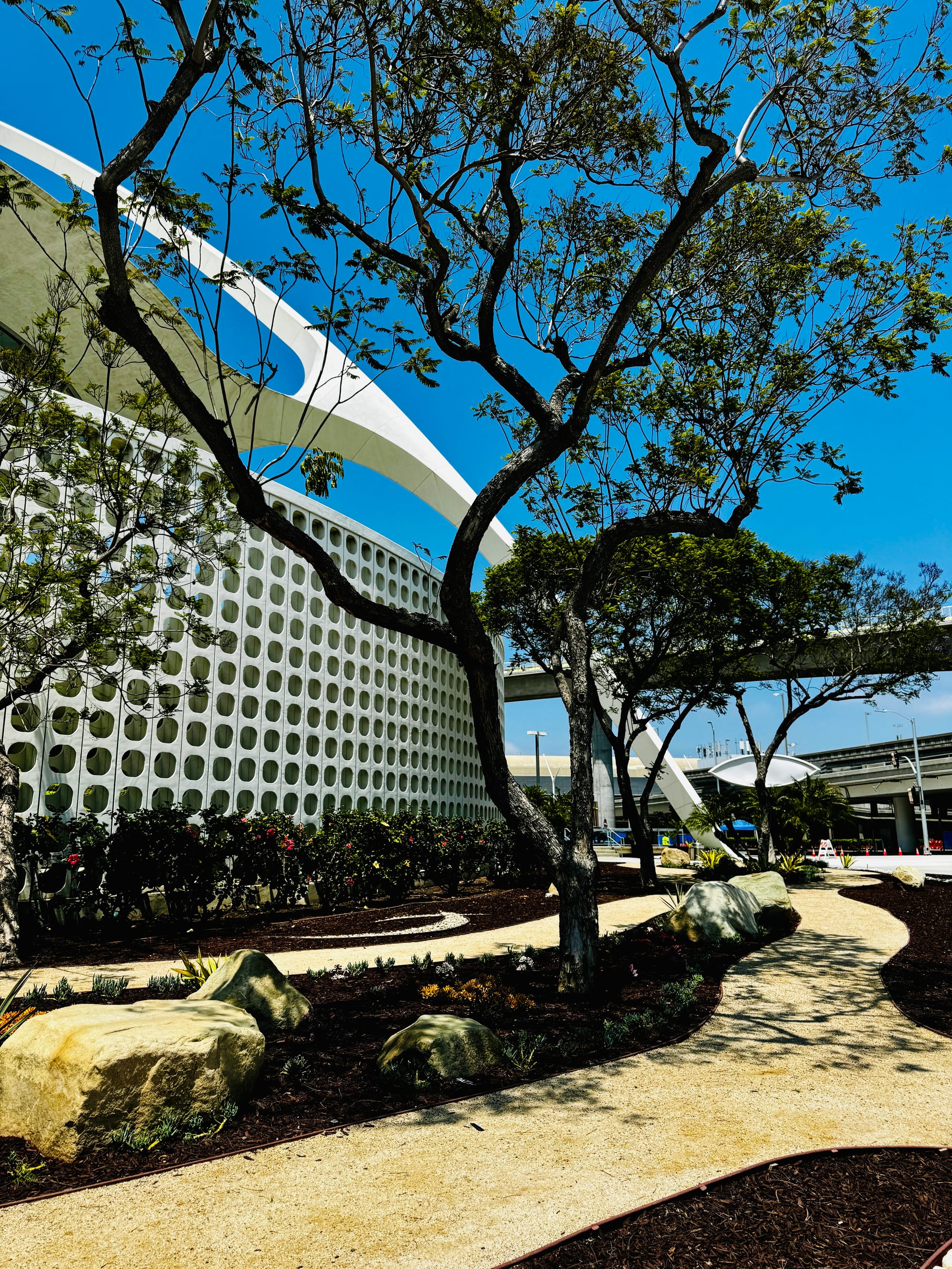 Speaking of that, I had time to walk around the old LAX floating restaurant/bar area in the iconic Theme building. It's all closed and empty inside, the "Encounter bar" signs still on the walls but mostly it looks like LAX employees use it for storage. The outside gardens were kept up though, which was nice.