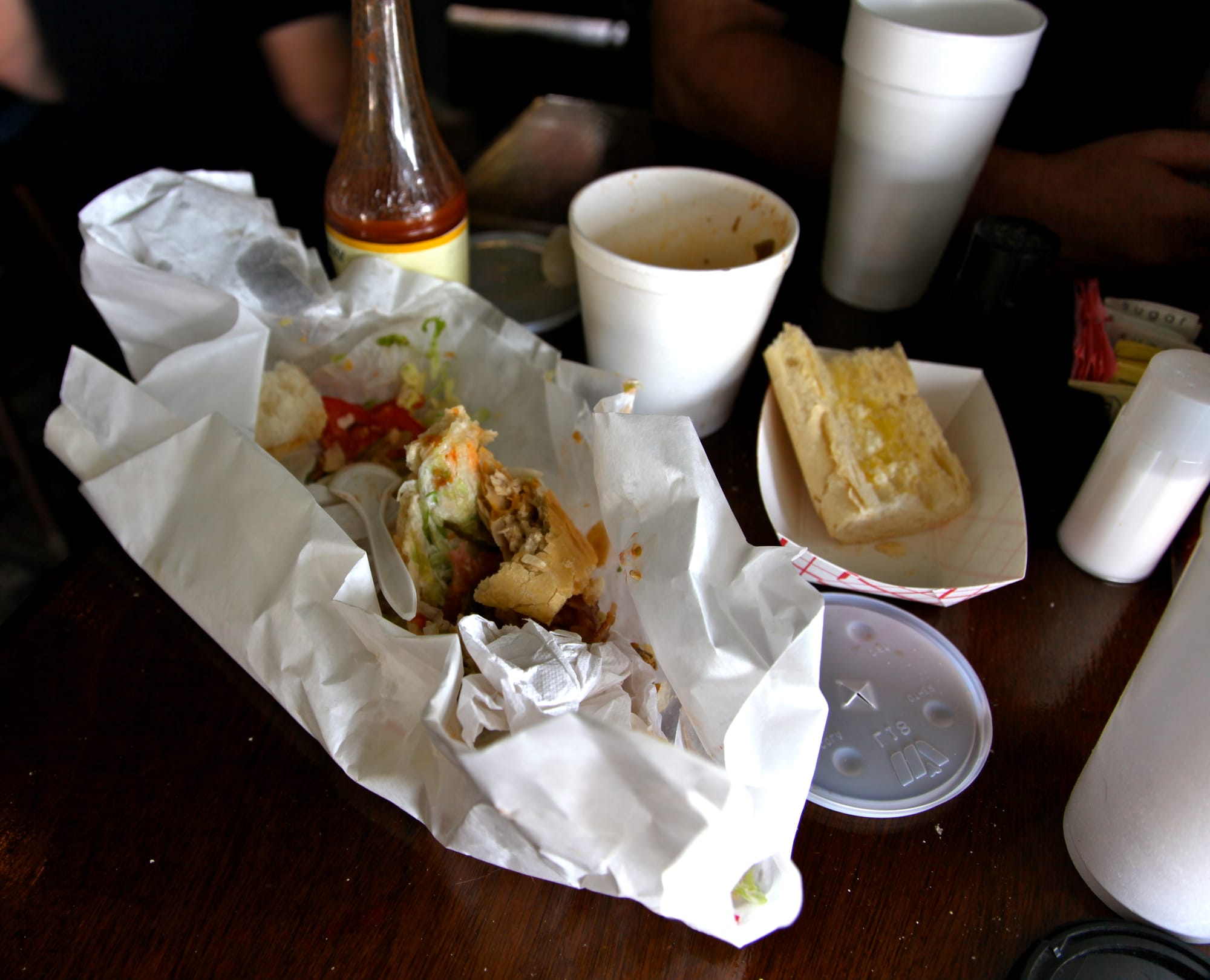 Looking at my photos from the day, he picked me up at my hotel around noon. We went to get the best Po Boy sandwich in the city because I was ready for lunch, then we hung around the waterfront and at his place. Someone gave us a tip that David Simon was in town to promote his recently announced HBO show Tremé, since The Wire had just ended the previous year. We crossed town to squeeze into a small bookstore to hear him speak about the show which was just about to go into production. After we got out of the event, I mentioned grabbing some dessert and he said let's get snowballs out of the side of an old woman's house. I had no idea what any of that meant, and when we showed up 10 minutes before they were closing, the staff was ready to give him an earful until they realized it was Pableaux, so of course we were welcomed with open arms.