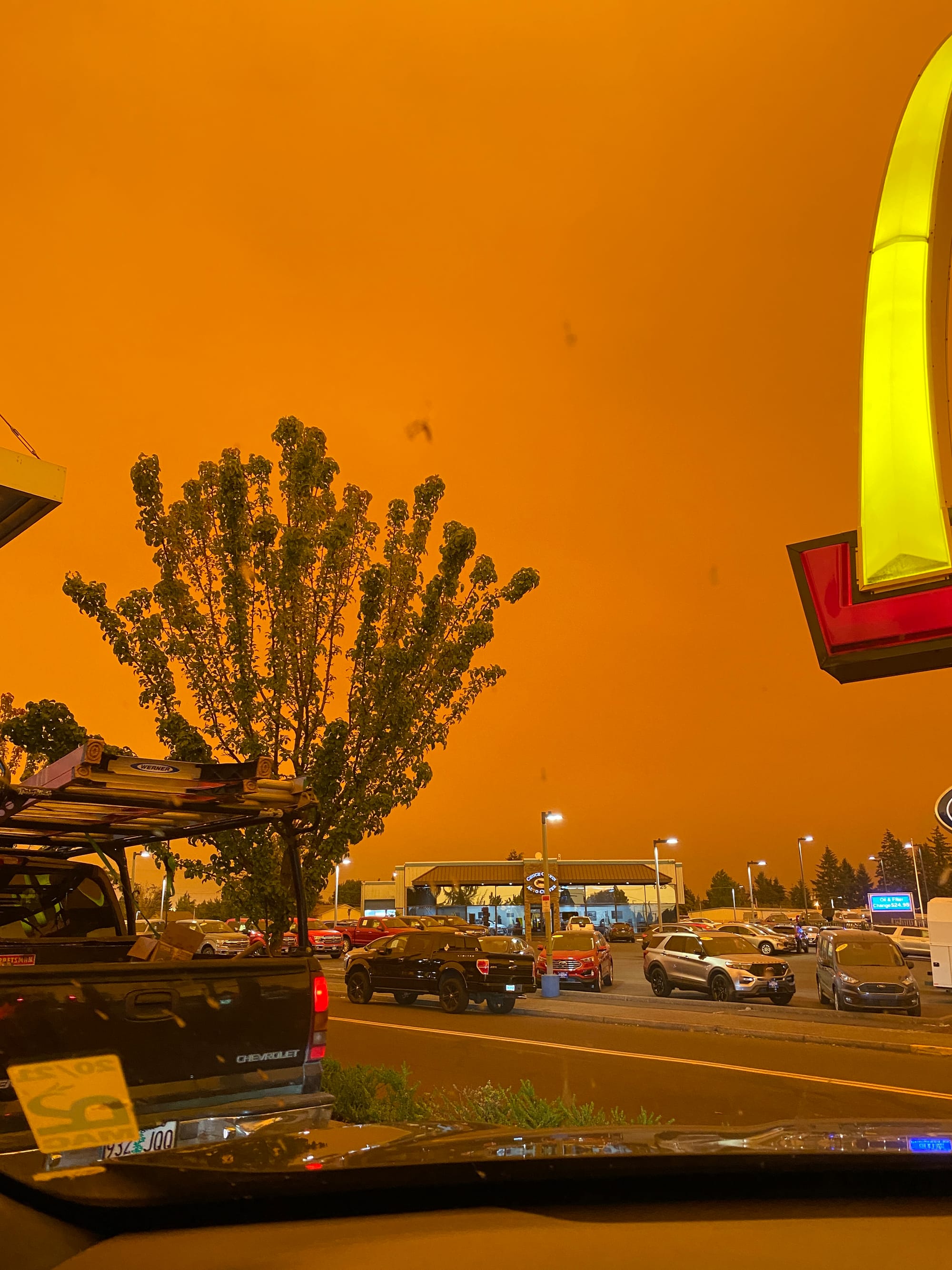 In the afternoon on the 9th, my daughter and I set out on a road trip to see the California Coastal Redwoods that we'd been planning for weeks and the orange sky followed us.