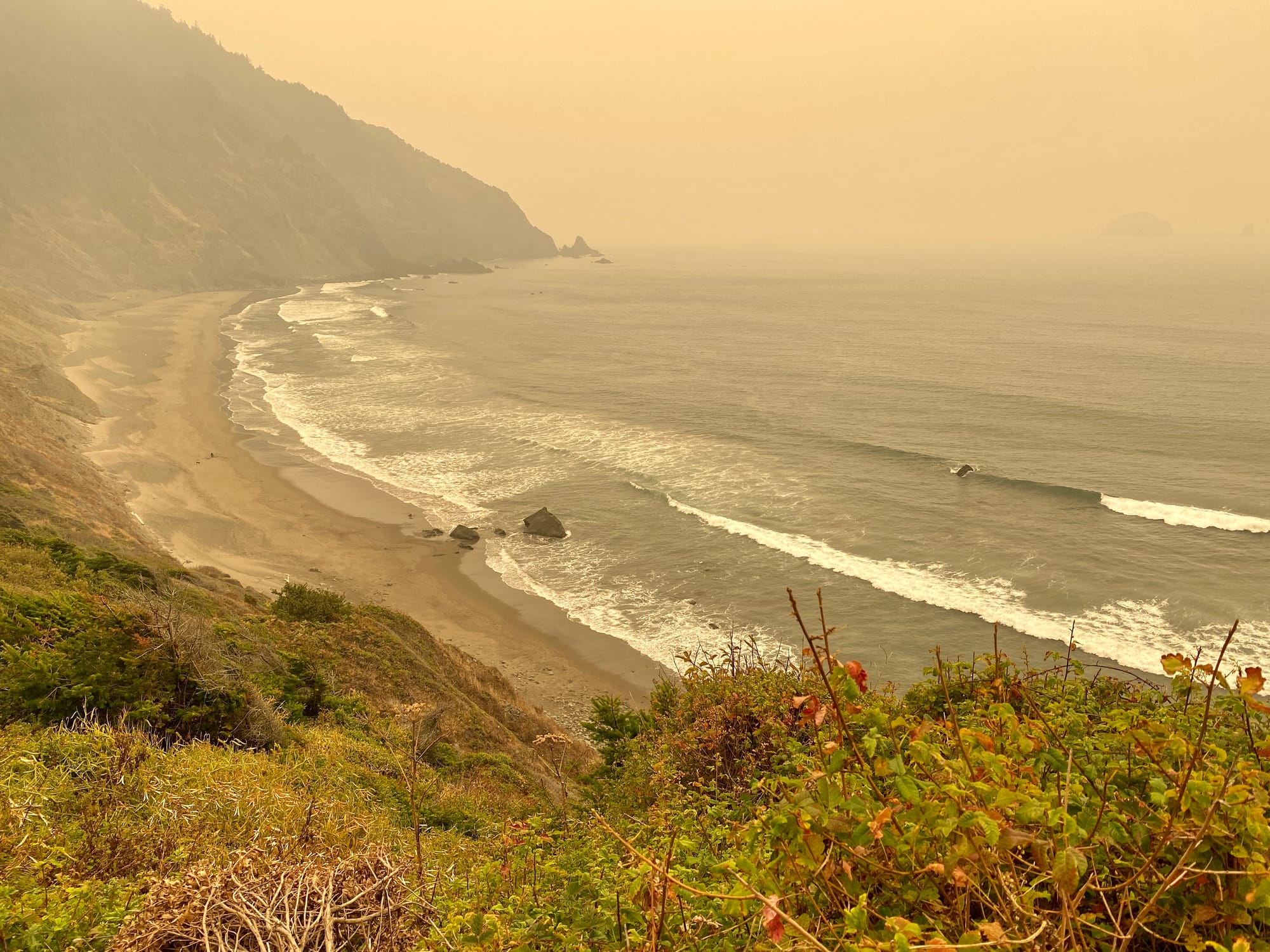 We headed out to the coast then pointed our way south. In the late afternoon, about halfway down the Oregon Coast we still had pretty bad air quality near Florence, Oregon.