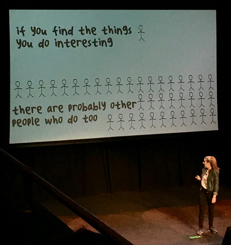 I loved Sunday opening with the hilarious Simone Giertz and her “shitty robots” that included a fun exercise where we all brainstormed dumb ideas for a brick, which pointed out sometimes silly ideas could actually have merit. Her work was also a perfect example of the power of throwing shit at the wall to see what sticks, which is something pretty much every creator does online.