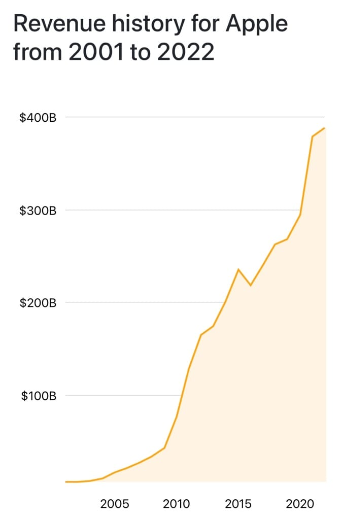 I’m not some kind of fancy economist but it’s weird to watch every major tech company lay off 10-20% of their workforce and even Apple, one of the most successful companies on earth, announce a hiring freeze when their company revenue graph looks like this.