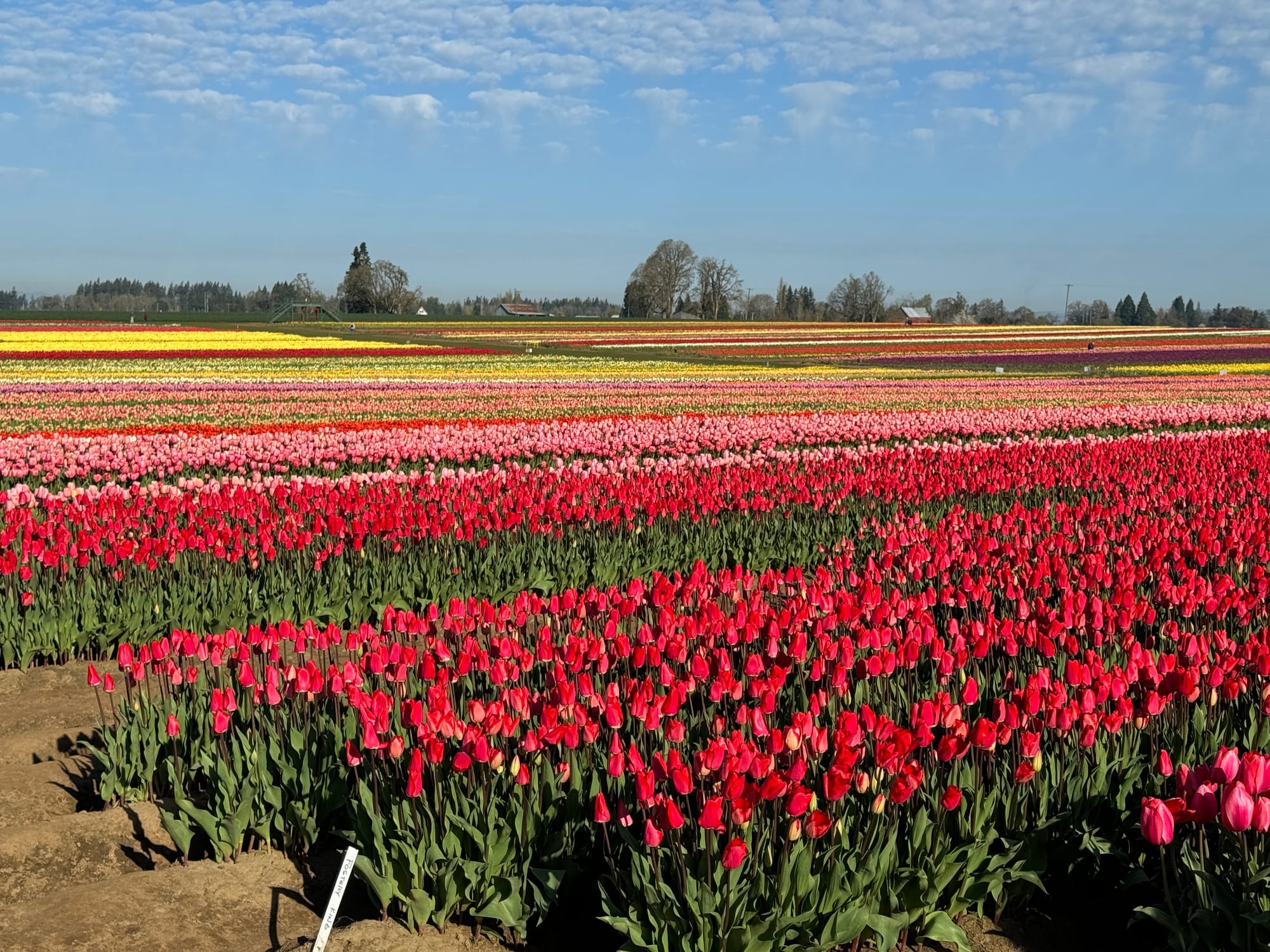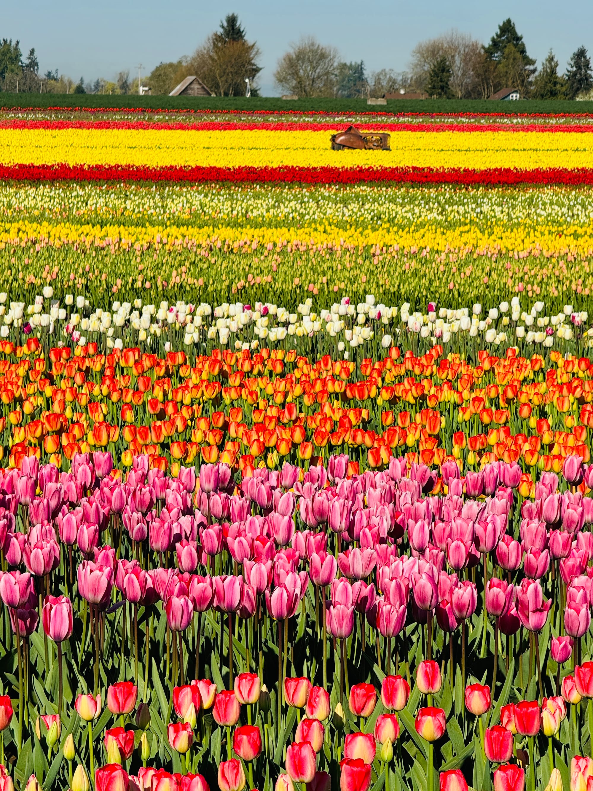 Every year around late March/early April I check out the Woodburn Tulip Farm website to see what their field report is looking like. For the past few weeks I've been obsessively watching cherry blossoms on trees instead and totally forgot about the tulip farm until I saw a friend's posts on Instagram with what looked like peak blooms already (a couple weeks early compared to other years).