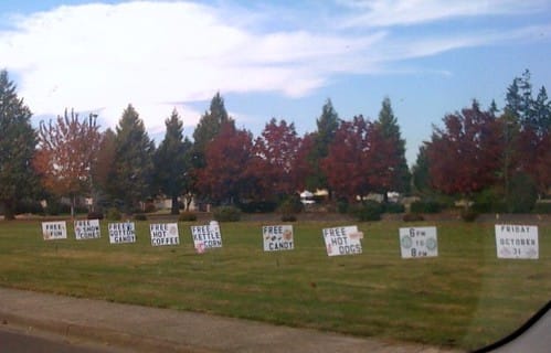 Like the above photograph shows, several local churches near me are throwing parties aimed at avoiding this holiday of giving and sharing with thy neighbors, going by the euphemistic term "Fall Family Festival." They offer treats, fun, and games, but they just so happen to throw them on October 31st, during the prime evening trick or treating hours.