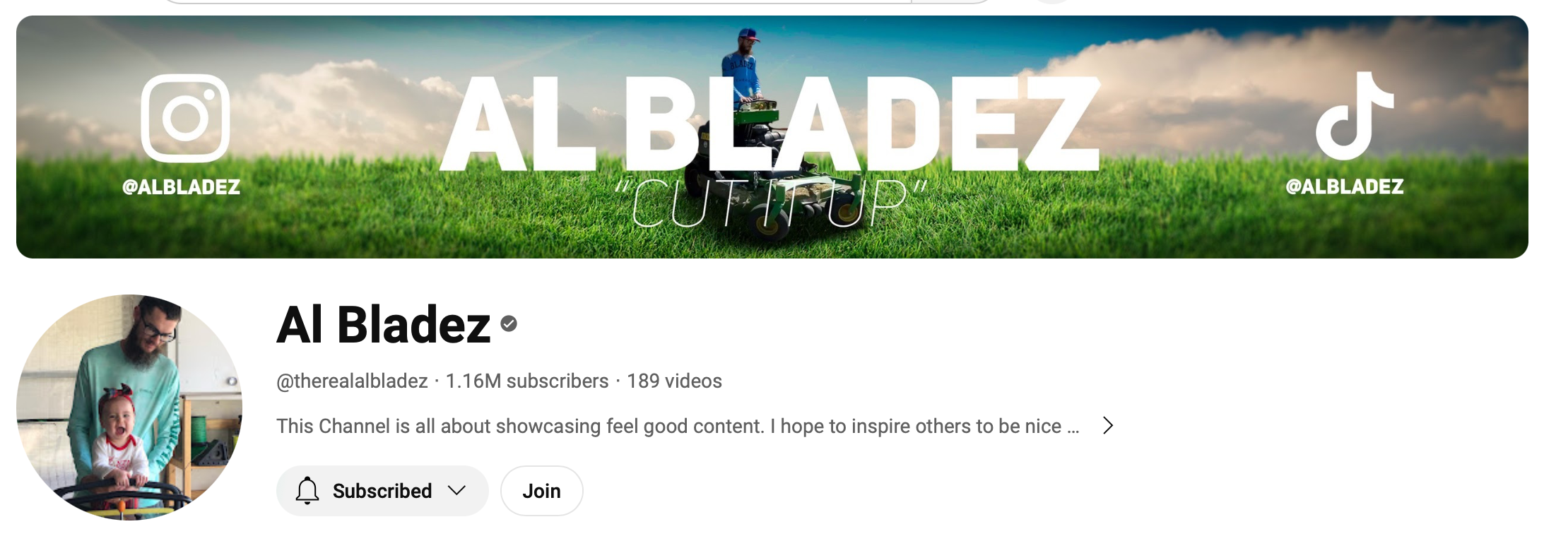 At some point, the Al Bladez channel started to skew towards altruism. This was a lawn care guy with his own paying customers, but the construct of his channel was he set aside one day a week to do one free overgrown lawn. At first his channel was all about the quest to find the tallest uncut grass possible (tall grass bogs down most mowers, so he's sponsored by mower companies that want to show how their best models can do tough jobs). But then he became all about finding people who needed the help the most and I'm sure he figured that out when one lawn had ten times the views because it had a great story attached to it.