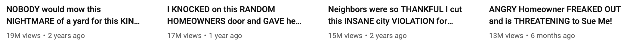 His channel now has lots of sad stories, people down on their luck or in and out of the hospital that couldn’t keep cutting their lawn. Most recently, the channel has grown to where he not only does a free lawn transformation but he also pays the owner’s rent or mortgage for a month in cash when he’s done.