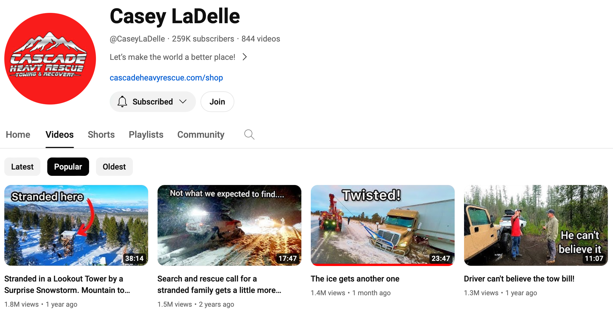 There’s towing/rescue/recovery being done for free and the creator looks right into the camera at the end of his videos to surprise the people he is saving by saying it’s all free and YouTube ad revenue pays for it (a towing company bill is normally several hundred dollars to low thousands of dollars). He also maintains a Patreon community where he gives away the money that comes from it. I've also noticed another guy doing off-road recovery pushes his free help angle.