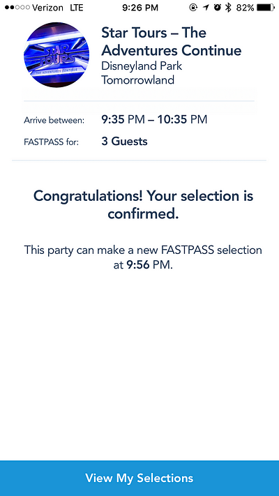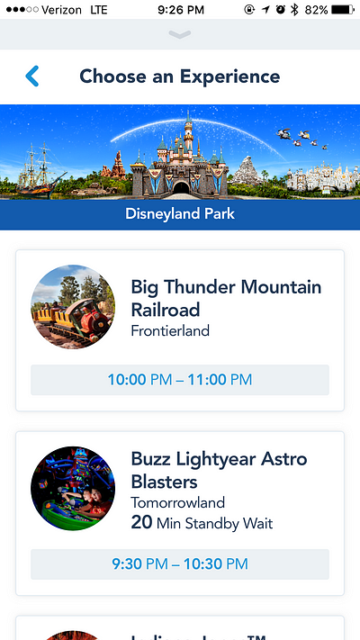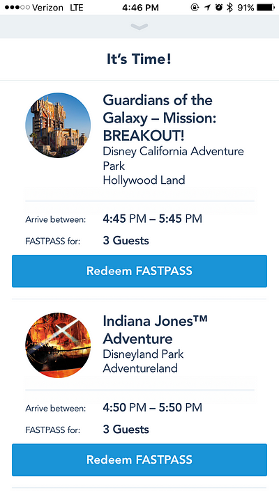 There were two parts to it. First, they revamped the FastPass system, letting you pick from any ride in Disneyland or California Adventure and get FastPasses for them right inside the app. The best part was, every half hour to an hour, you could select another, which frankly felt like cheating. If you used one of your FastPasses you could immediately get another for your whole group.