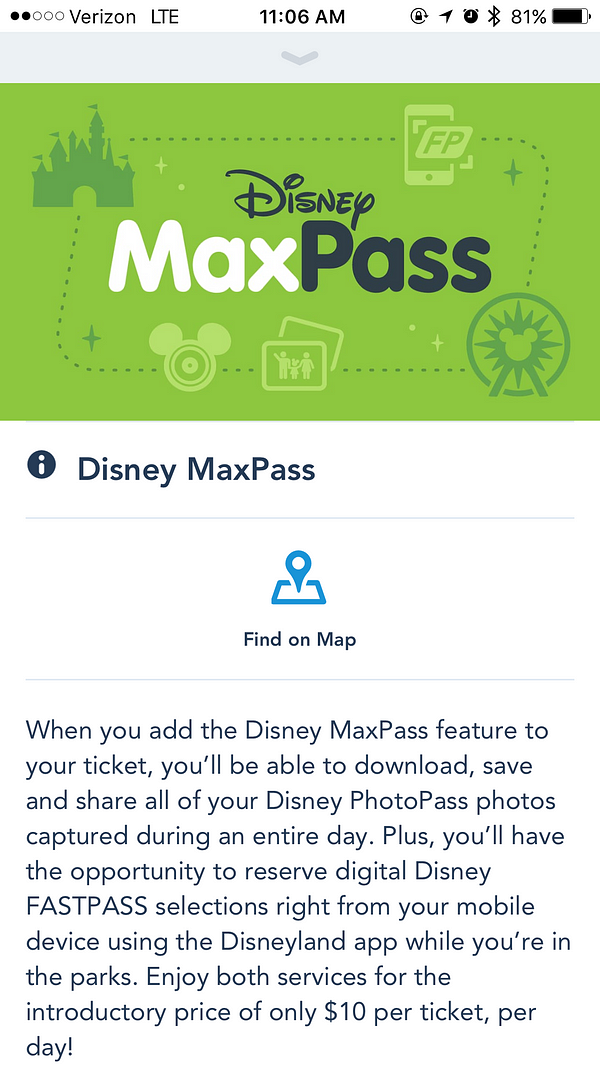 A friend recently visited Disneyland and told me about an addition to Disneyland’s mobile app feature called the MaxPass, and he urged me to spend the extra $10/person/day to buy it. I followed his advice and I’m here to say it was the best $10 I ever spent in the parks.