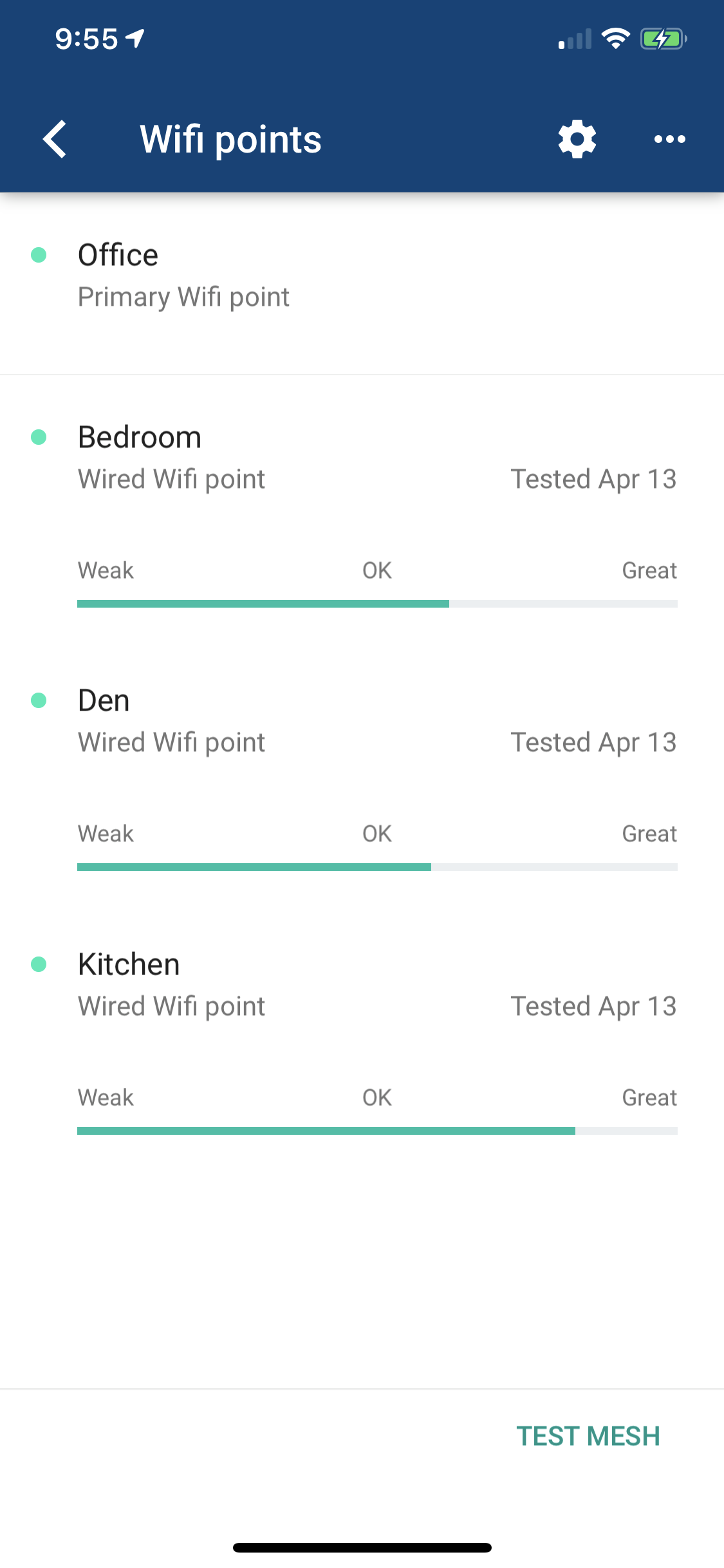 After a year of eero, I gave up and tried out Google's WiFi mesh product, and it followed the same pattern. Even with four points (two per floor), getting decent enough wifi upstairs continued to be a problem, and my 200Mbps connection in my home office would end up being 10-20Mbps speeds on the upstairs floor (in between weekly dropouts where one point upstairs would fall off the network completely).