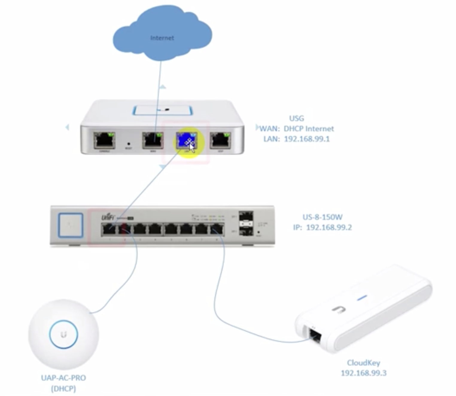 • Ubiquiti Security Gateway (USG) which acts as your router/DHCP server/firewall that hands out IP addresses to everything