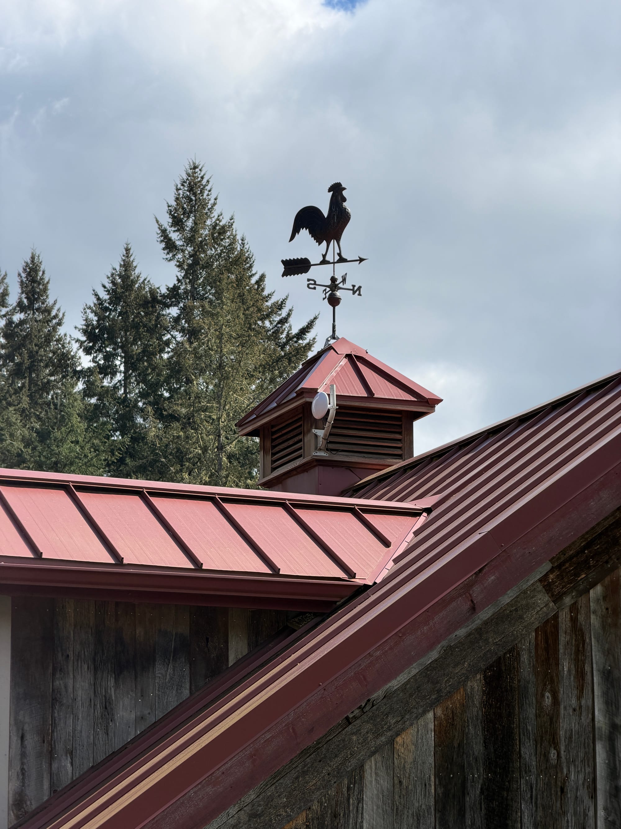 Here are the four Device Bridge Pros mounted on each building, top left is our unattached garage, then the corner of our chicken coop, the top of our barn's cupola, and then the back corner of an art shed.