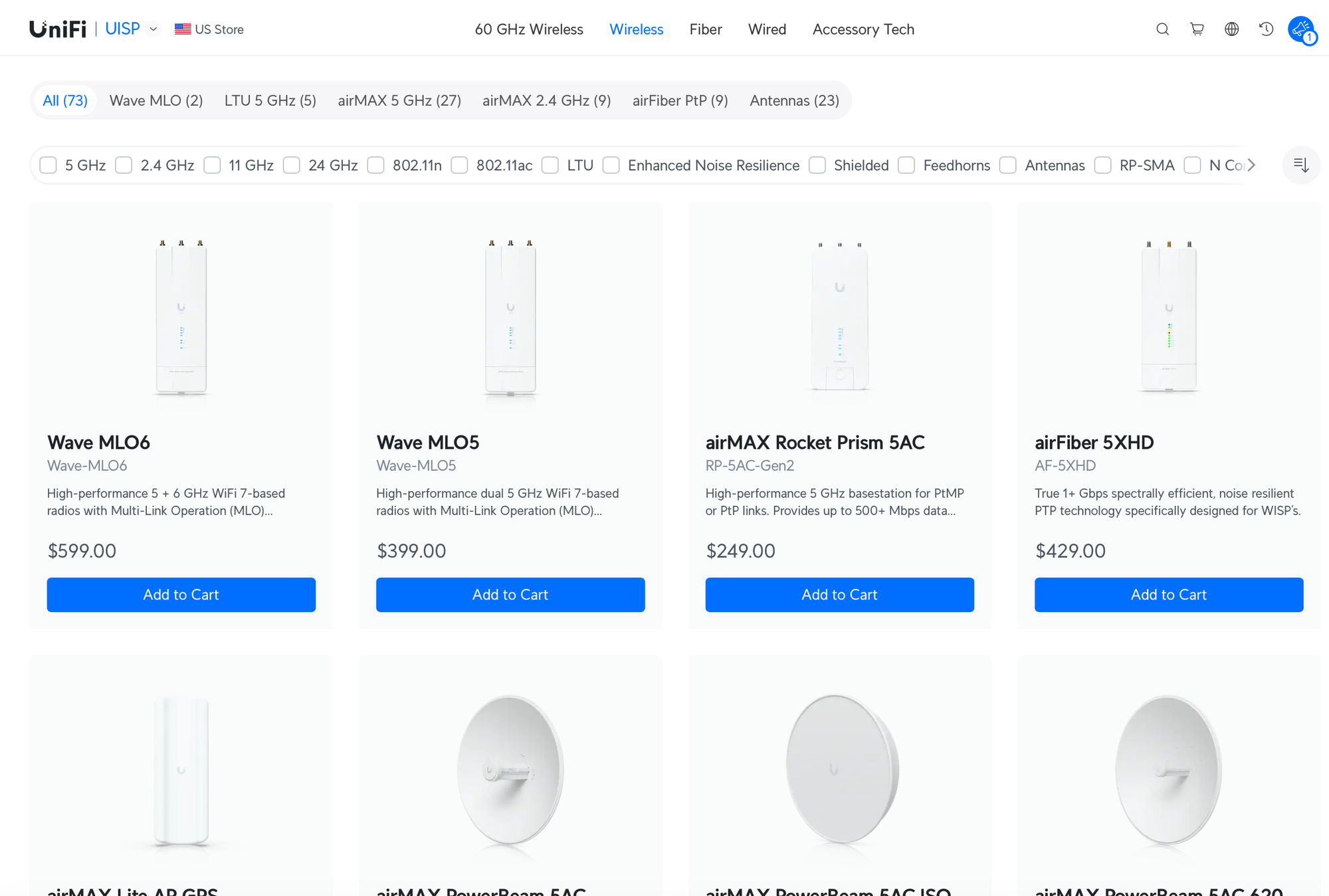 I had a hard time finding anything that met my criteria and the one I wanted most was on extended backorder (or if reddit commenters are to be believed, it was canceled completely). UniFi's entire wireless catalog is pretty baffling as they list 73(!!!) different antennas, dishes, and points to connect buildings to one another over wireless. It's why I initially hired a network engineer to help me plan it all out that first time.